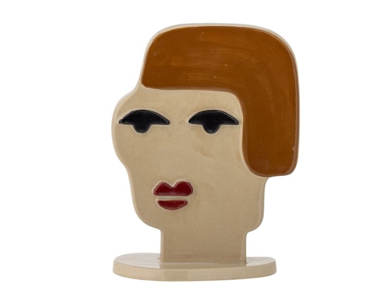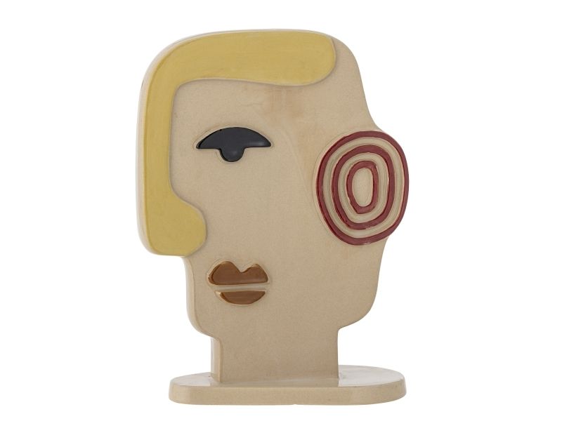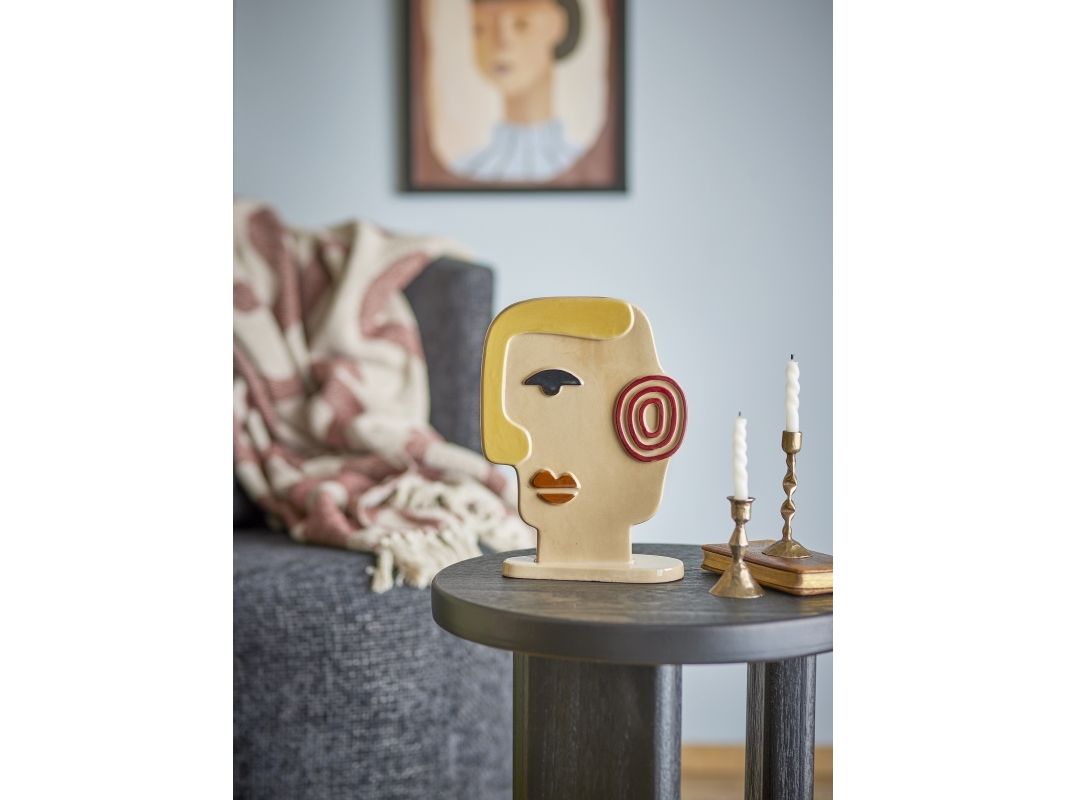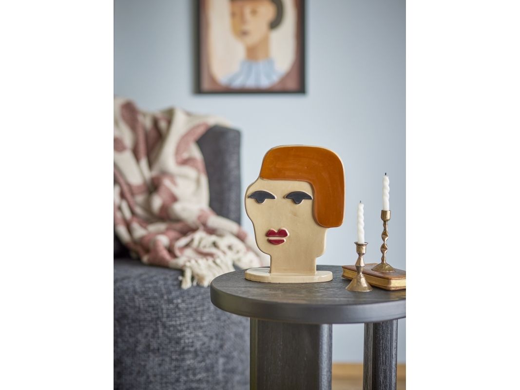 The Voila Deco by Bloomingville is a decorative stoneware figure shaped like a face with details in contrasting colours. The figure has two different sides, each with its own expression, and can be turned depending on which look you wish to highlight.