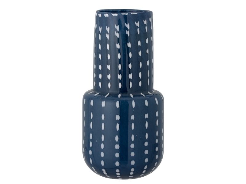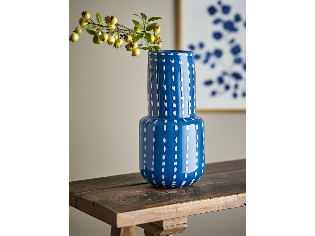 The Mayim Vase by Creative Collection is an elegant mouthblown glass vase in a beautiful dark blue color with a dotted pattern. Decorative both with and without flowers. The vase is mouthblown, so each vase will be unique and vary in color and pattern.