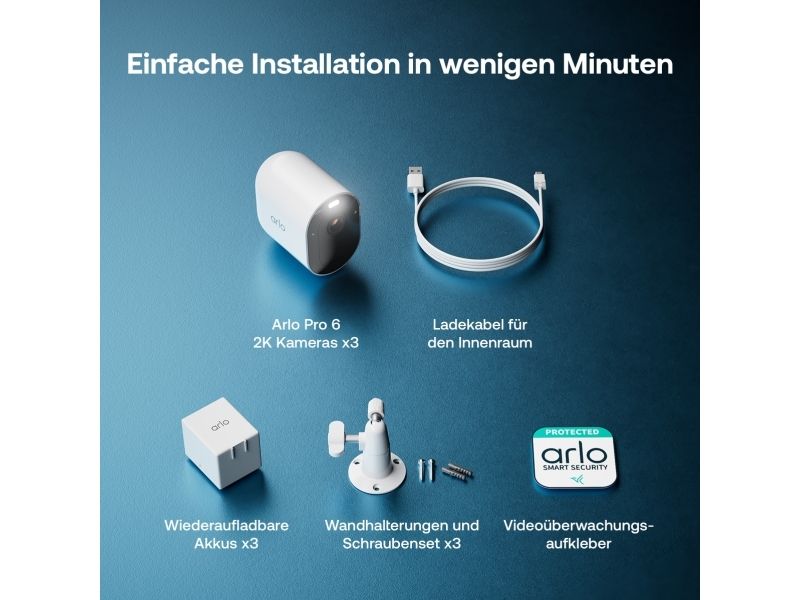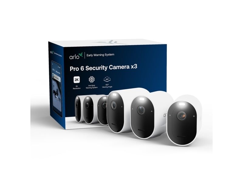 Arlo Pro 6 2K+ Security Camera, 3-cam, IP security camera, Outdoor, Wired & Wireless, 7.5 m, Amazon Alexa & Google Assistant, Auto