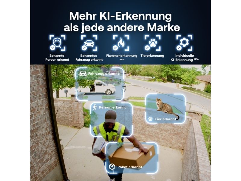 HDR, Color Night Vision, 30 days of storage, Advanced Object Detection, brugerdefineret aktivitetszone, indbygget spotlys, echo cancelation