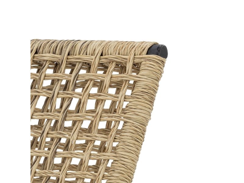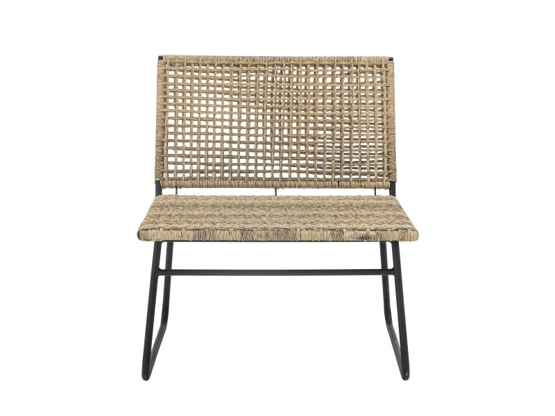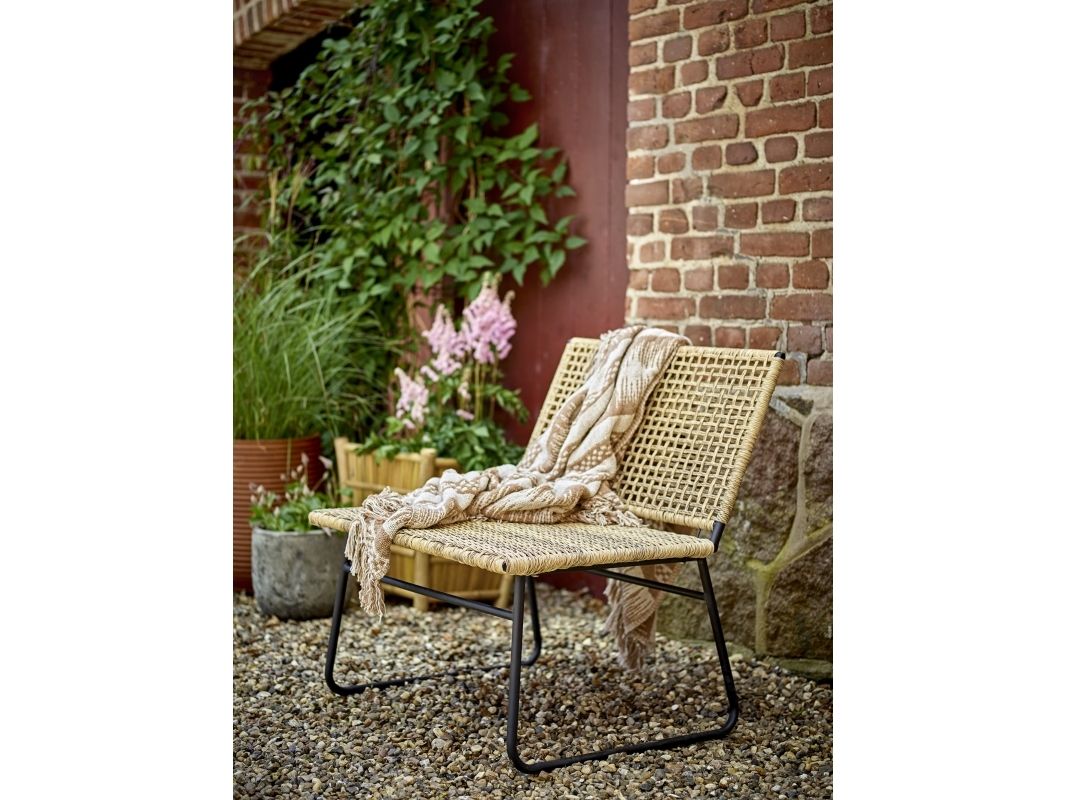 The Vallone Lounge Chair from Bloomingville is a relaxed and stylish chair with a woven polyrattan design and a sturdy metal frame. The chair invites a laid-back atmosphere conducive to cozy conversations. The practical material ensures a natural aesthetic, making the chair ideal for relaxing moments on the terrace or in the garden. We recommend placing furniture in covered areas.