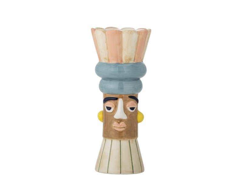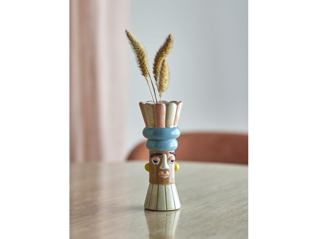 The Minio Vase by Bloomingville is a decorative piece designed with a sculptural, flower-inspired top and a characterful face. Hand-painted in soft rose and muted tones, it brings a playful and expressive touch to any room. The multifunctional design allows it to be used both as a vase and as a candle holder. Small variations in pattern and color intensity may occur, making each piece unique.