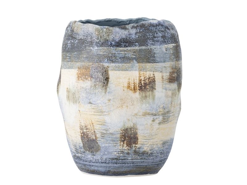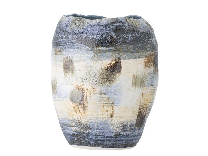 The Nienna Vase by Bloomingville is made of stoneware and has an irregular shape that gives the vase an authentic look. The beautiful play of colors in the glaze, in shades of blue, white, and brownish tones, makes each vase completely unique. The vase can be used as a decorative item alone or with dried or fresh flowers.