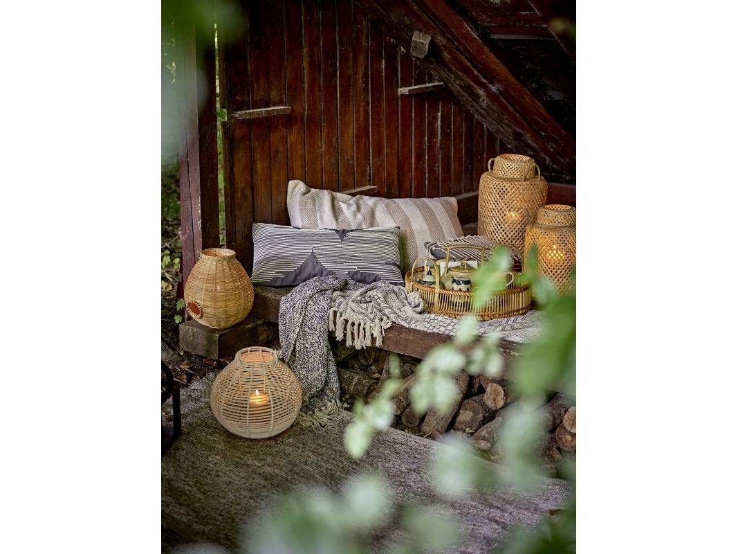 The Ottine Lantern by Bloomingville is inspired by traditional fish traps and creates an inviting atmosphere with its cozy design and natural bamboo material. This lantern has a unique design, drawing inspiration from traditional woven fish traps, which is reflected in its characteristic shape. It has a glass insert for the candle or LED light.
