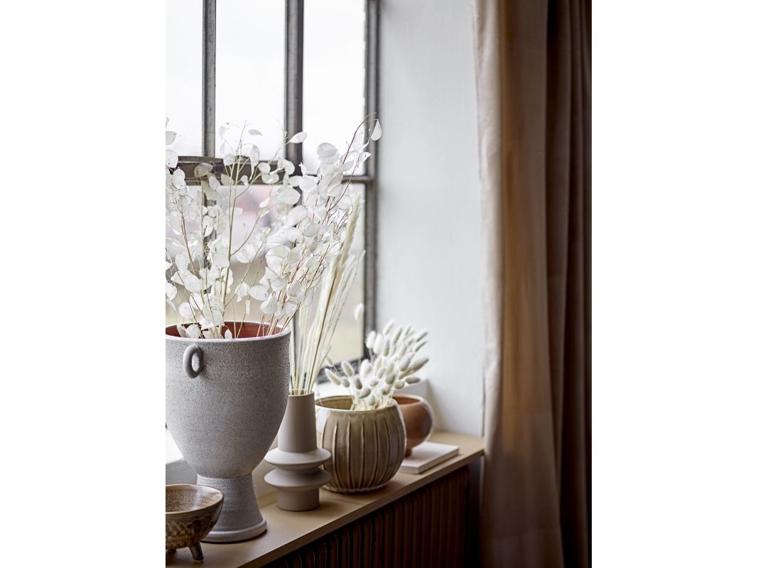 Light brown stoneware vase in a soft matte latex glaze. Style as a single piece or group with beautiful home accessories