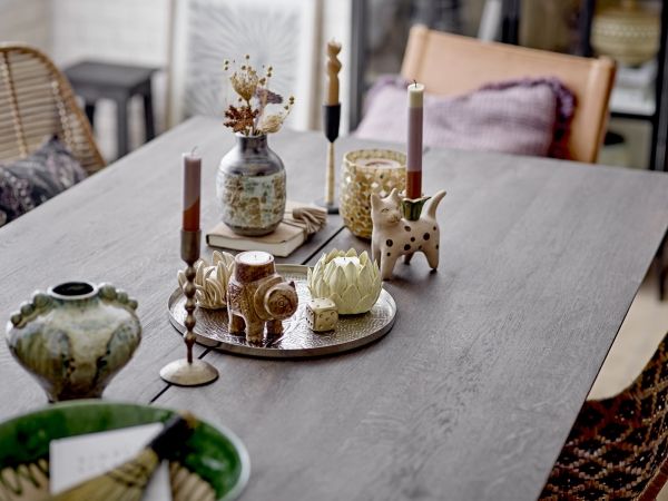 The Maldon Dining Table by Bloomingville is perfect for cozy gatherings with family and friends. The beautiful oak table, in a deep dark brown shade, adds a warm atmosphere to the room. The table top's sleek shape gives the table a modern and light expression.