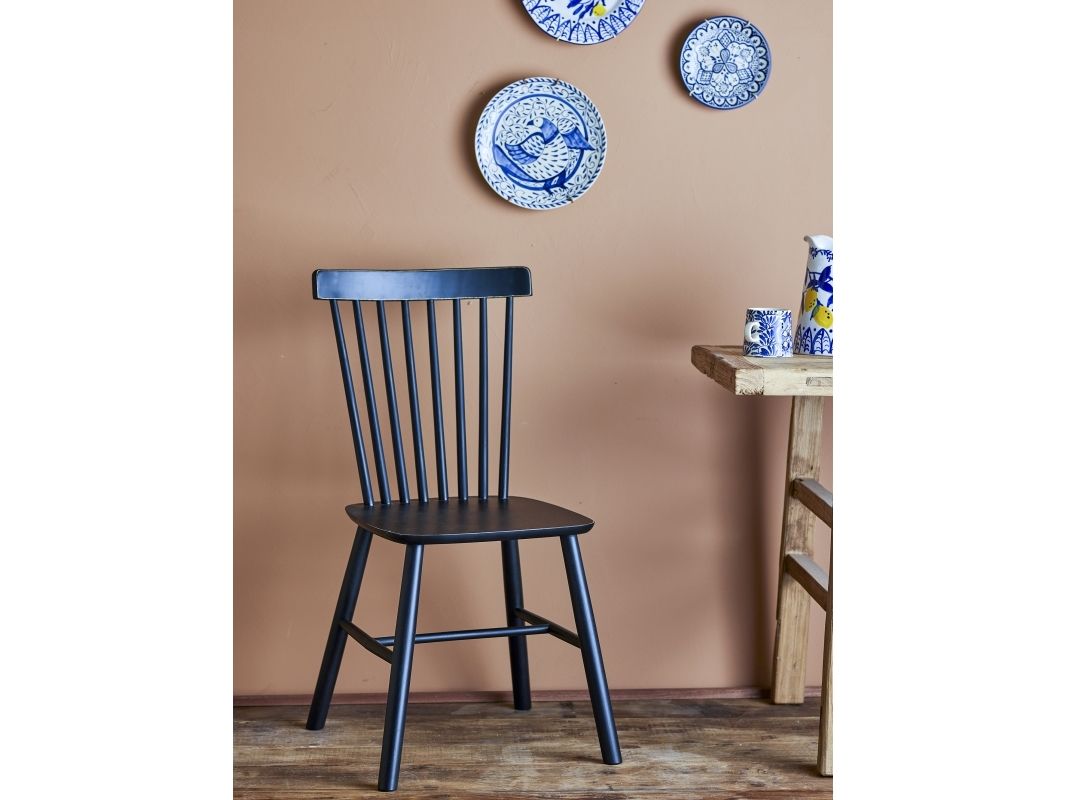 The Mill Dining Chair by Creative Collection is a classic dining chair made of rubberwood in a classic black color. This versatile chair works well in various spaces, whether in the hallway, at the dining table, or as a practical desk chair.