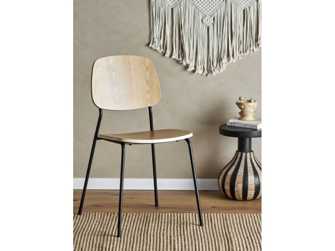 The Monza Dining Chair by Bloomingville is the perfect addition to any dining area! This elegant chair has a simple and timeless design, crafted in light plywood and complemented by black metal legs.