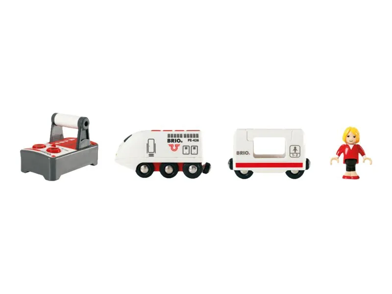 • Lieferumfang: 1 x BRIO ferngesteuerter Reisezug 4-tlg. / Zubehör für die Holzeisenbahn BRIO World - ideal als Geschenk zum Geburtstag & zu Weihnachten / AA-Batterien notwendig (nicht enthalten)