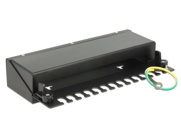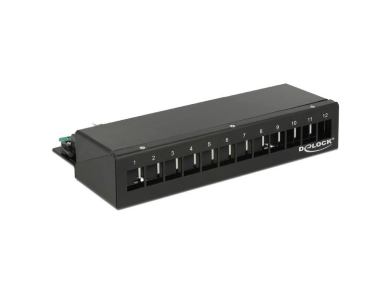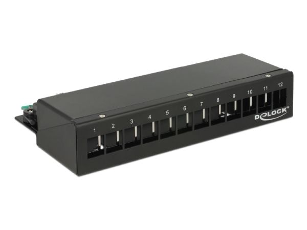 This patch panel by Delock can be used as a junction box on the wall or in enclosures. With its standardized dimensions, it is suitable for easy snap-in mounting of twelve keystone modules.