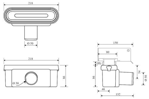 Unidrain outlet housing with Ø50 mm horizontal outlet plus removable water trap