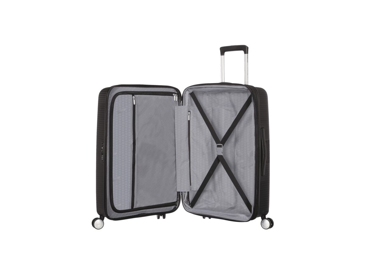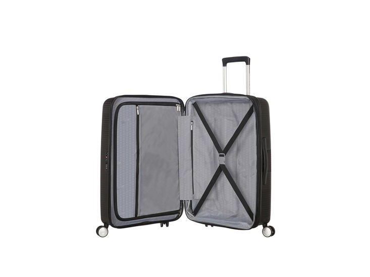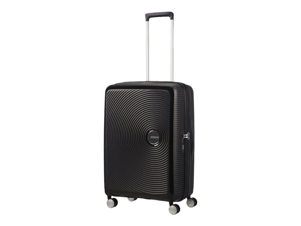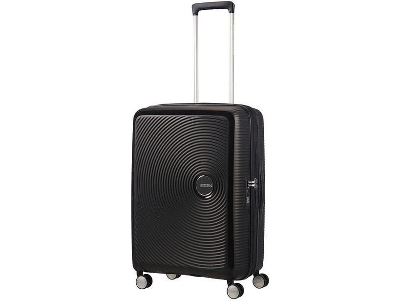 Soundbox’s groovy award-winning medium sized expandable suitcase is a great choice for a week’s holiday. It’s secure, light and tough and the playful circular design with contrasting matte and shiny surfaces will really cause a stir whenever you travel. Expandability, fixed TSA lock, 4 smooth rolling wheels and practical inside organisation all help to make this a great suitcase choice!