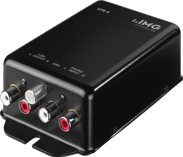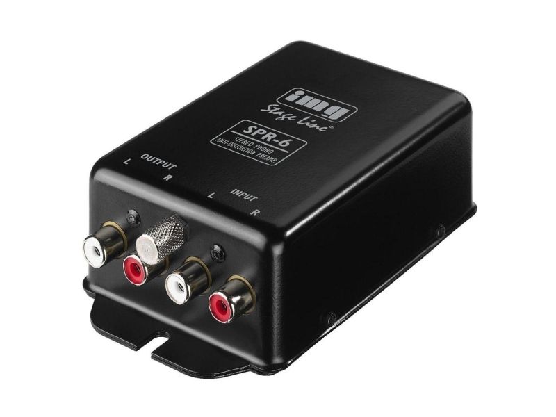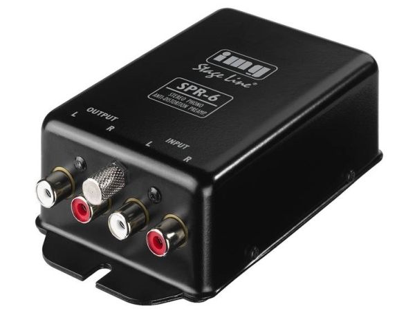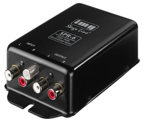 Stereo phono anti-distortion preamplifier acc. to RIAA, for connecting a turntable to the aux input or line input of a hi-fi system, a mixer or an amplifier, etc. Low hum effect due to metal case and supplied plug-in power supply.