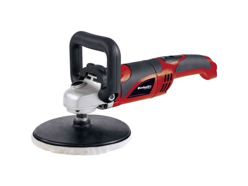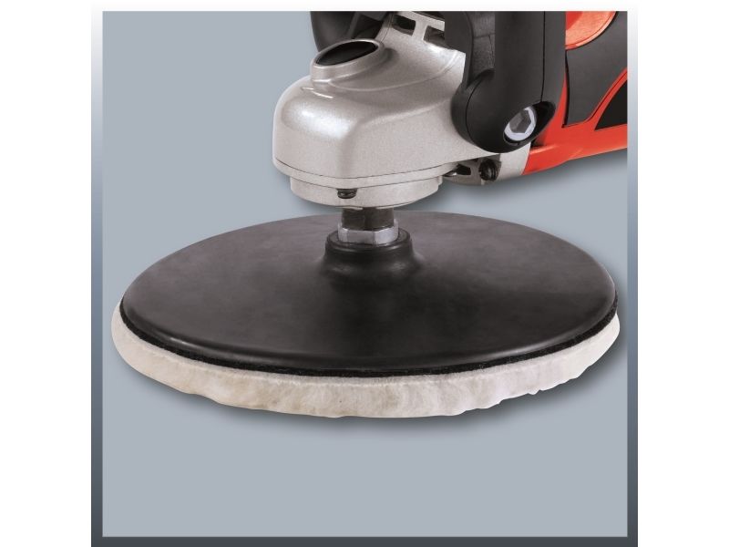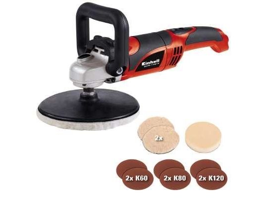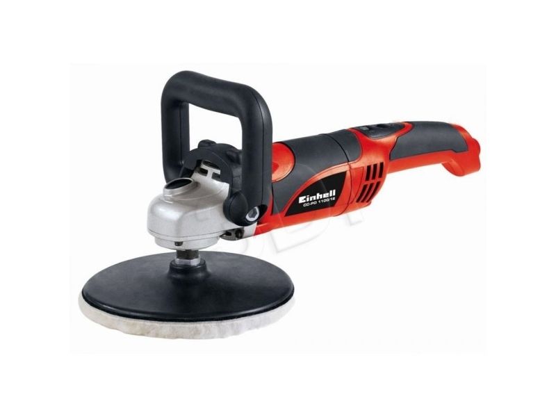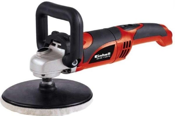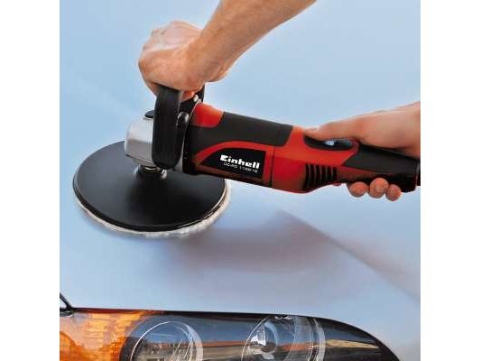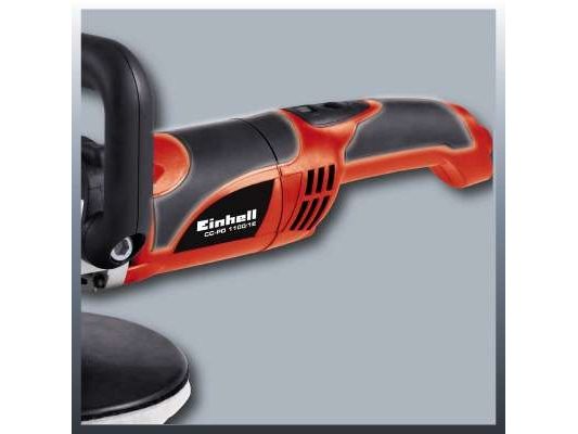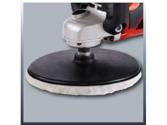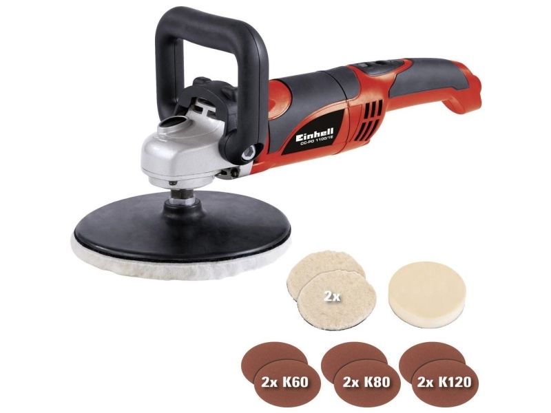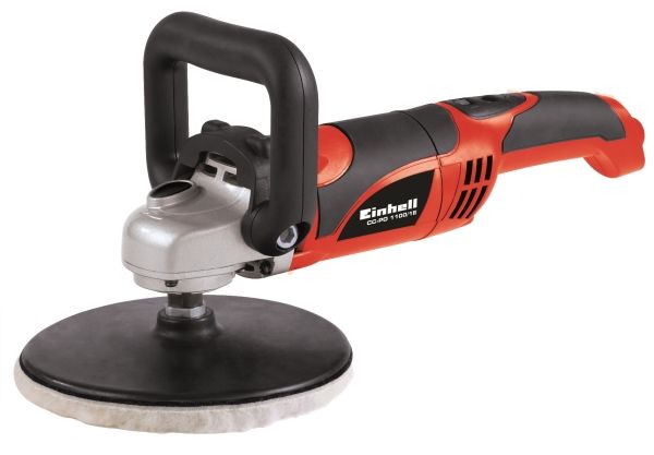 For the ambitious do-it-yourselfer the Einhell polishing/sanding machine CC-PO 1100/1 E is the powerful, robust and handy expert polishing and grinding device. It is ideal for polishing of varnished surfaces as well as grinding of wood, plastics and metal. Thanks to its soft grip this device can be handled safely at any time, and operations as polishing of cars can be performed quickly and thoroughly. For varnish care the large additional handle enables best control and precise results. By the finely adjustable electronic speed control the speed of the polishing or grinding attachments can be optimally adapted to the surface being processed. With the practical spindle lock the spindle can be blocked without tools. Thus, the grinding disk on the polisher can be changed quickly and easily. The grinding disk is equipped with a special hook-and-loop fastener in order to fix the polishing and grinding attachments safely on the electric grinder and to prevent entering of dust between disk and grinding paper. The polishing and grinding attachments can be still easily loosened and they can be changed quickly if requested. The comprehensive polishing and grinding accessories consist of 1 foam attachment for e.g. car polishing, 2 synthetic polishing caps and grinding paper disks of 60, 80 and 120 granulation with 2 of each. The polishing and grinding device is delivered in a practical stowage case of robust plastics.