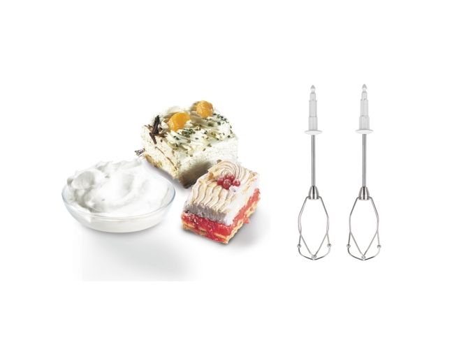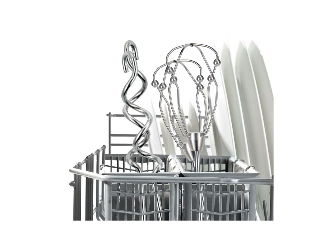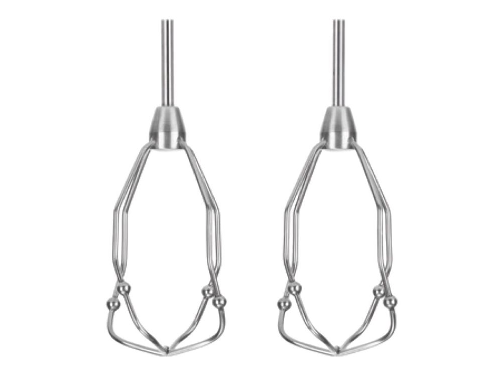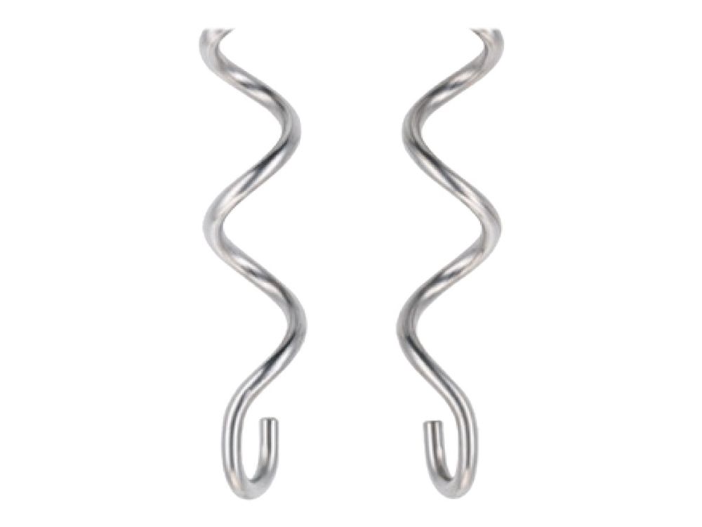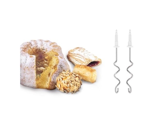 Håndmixer i rustfrit stål (2x), dejkroge af rustfrit stål (2x)