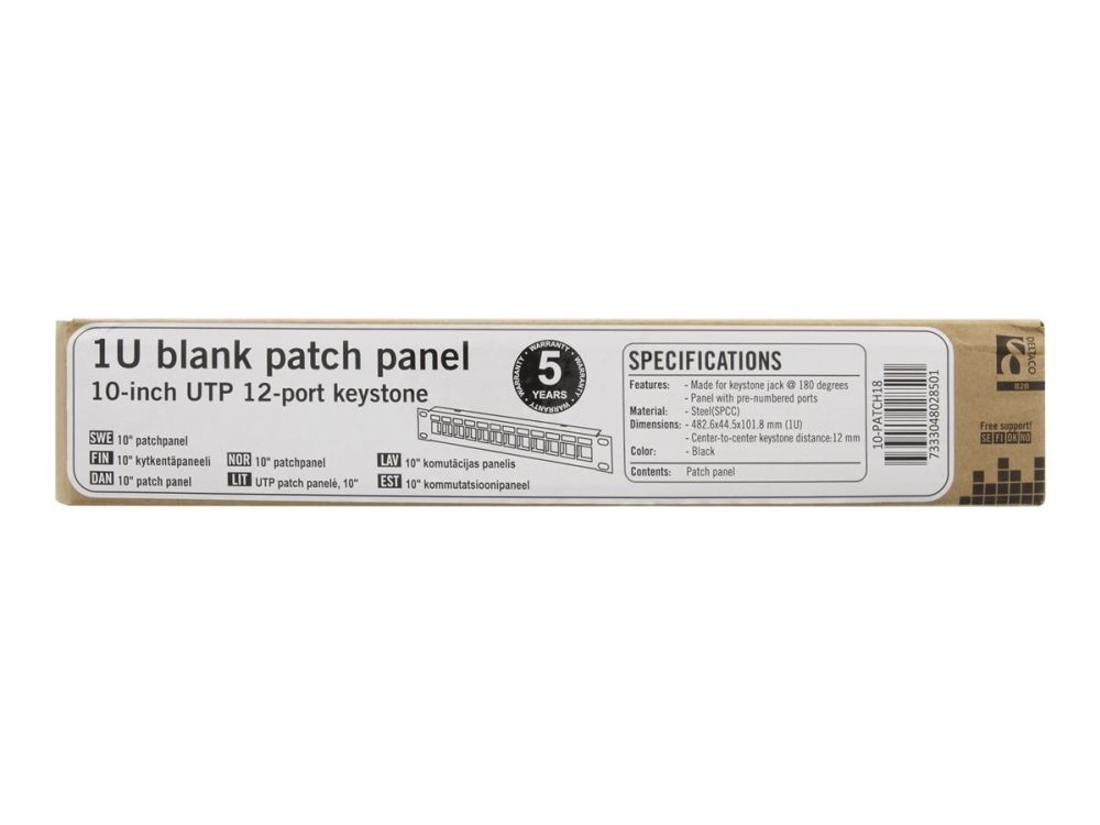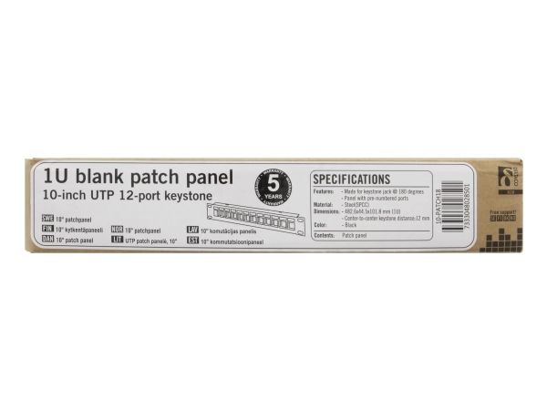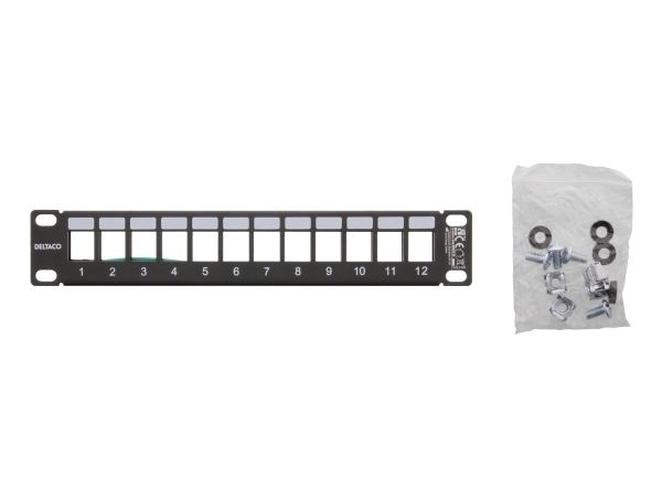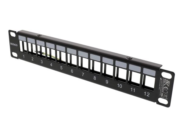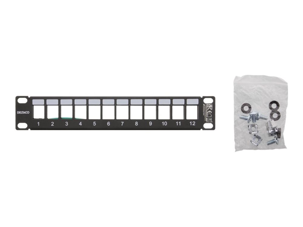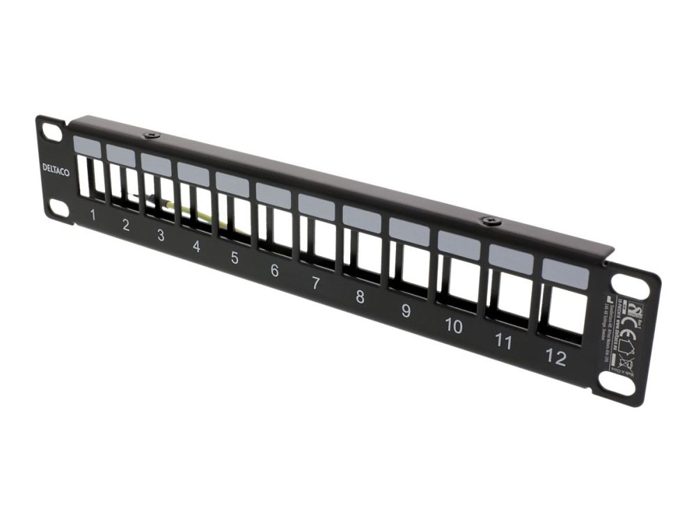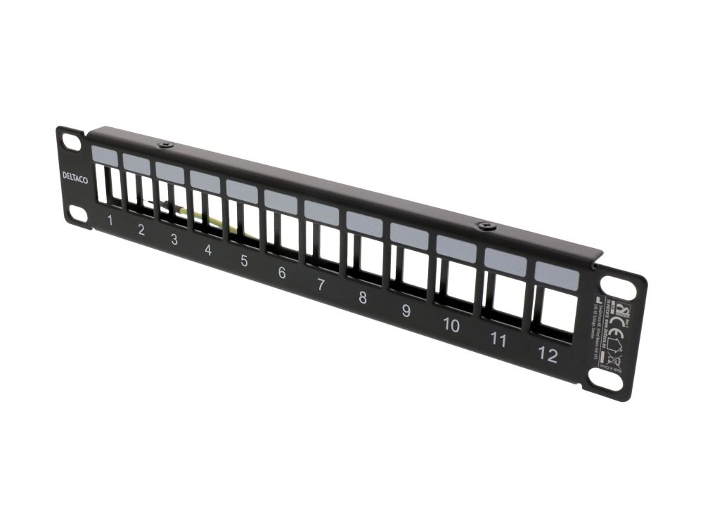 10" Keystone patch panel, 12 ports, 1U, metal, black