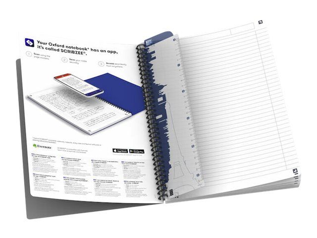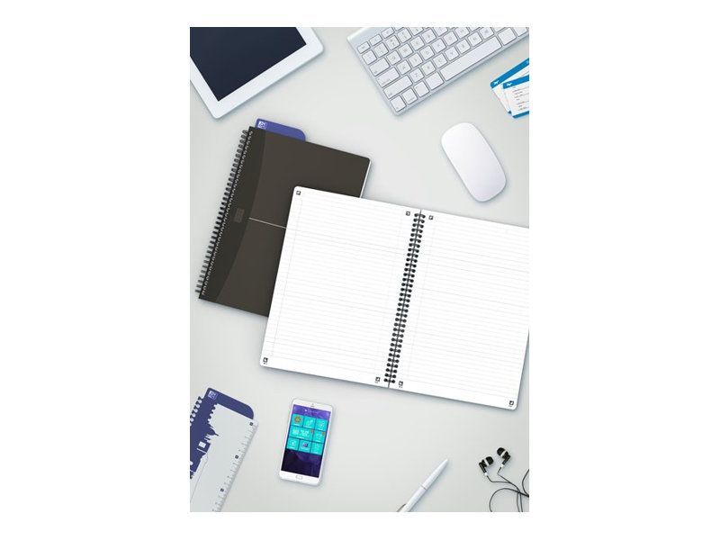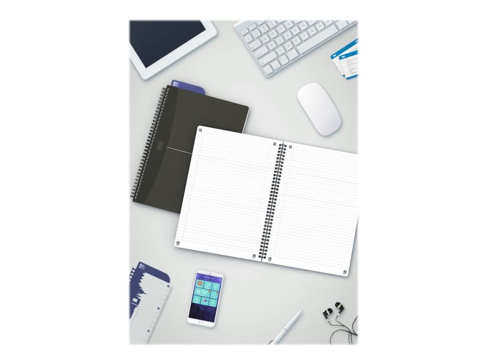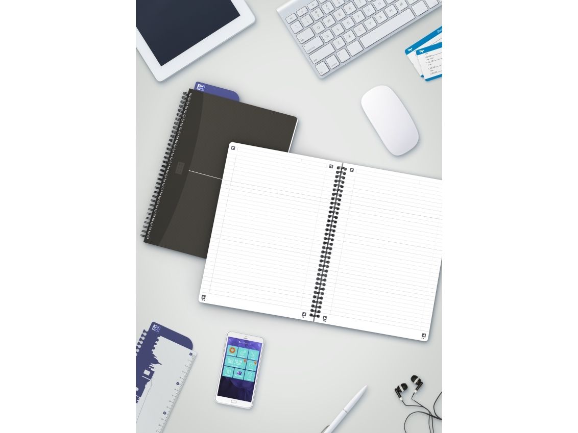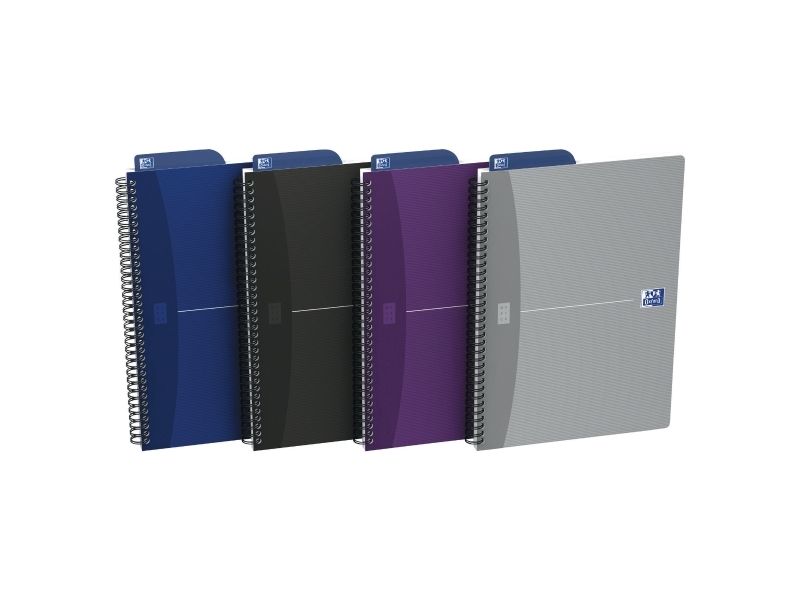Oxford Essentials Notesbog i fleksibelt omslag og dobbeltspiral. Dobbeltspiralen gør det muligt at åbne notesbogen 360°. Linjering med sidehoved og margin, der hjælper dig med at organisere dine noter. Takket være det ekstra hvide og glatte Optik Paper® i 90 g/m2 kan du skrive på begge sider af arket, uden at blækket bløder igennem. Har fået tildelt EU’s miljømærke, der garanterer reduceret miljøbelastning for papirprodukter gennem hele deres livscyklus fra råvare til bortskaffelse. Siderne er kompatible med den gratis SCRIBZEE®-smartphoneapp, så du nemt kan scanne, gemme og organisere dine noter.
