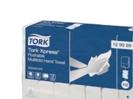 Tork Xpress® Flushable Multifold Håndklædeark er perfekte til områder, hvor håndklæderne nogle gange ender i toilettet i stedet for affaldsspanden. Disse håndklædeark passer til Tork Xpress® Dispenser Multifold Håndklædeark, som med sin en-ad-gangen funktion mindsker forbrug og spild og samtidig sikrer både komfort og hygiejne for dine gæster.