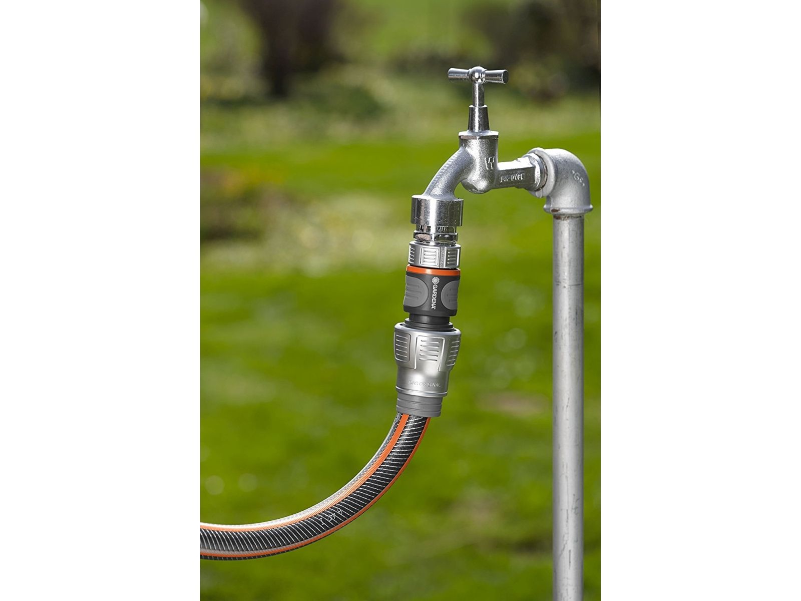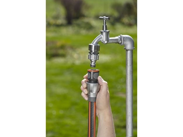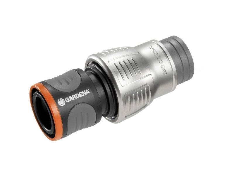Der GARDENA Premium Schlauchverbinder in hochwertiger Metall-Kunststoff-Ausführung ermöglicht den schnellen und bequemen Schlauchanschluss. Ein integrierter Knickschutz verhindert das Herausrutschen des Schlauches