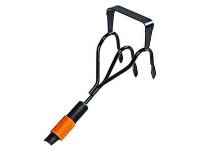 Der QuikFit Krümmerjäter von Fiskars kann gleich zwei Geräte ersetzen, denn er kann für mehrere Aufgaben verwendet werden. Zum einen können seine Zinken als Krümmer zum Lockern und Lüften von leichten bis mittelschweren Böden benutzt werden. Zum anderen befindet sich auf seiner Rückseite ein Jäter. Mit diesem Gerät kann der Boden zum Bepflanzen vorbereitet werden. Darüber hinaus kann das Werkzeug zur Beetpflege benutzt werden. Die Zinken aus gehärtetem Stahl sind besonders stabil und besitzen außerdem lanzenförmige Spitzen. Die breiteste Stelle des Geräts beträgt 12,5 Zentimeter. Insgesamt ist der Fiskars QuikFit Krümmerjäter 31 Zentimeter lang, sein Gewicht beträgt dabei 507 Gramm. Das Design dieses Produkts ist ausgezeichnet. Es gehört zu den Red Dot Design Award Gewinnern des Jahres 2010. Der Award wird seit 1955 jedes Jahr vom Design Zentrum Nordrhein-Westfalen vergeben und gilt als weltweit anerkannt. Zudem trägt das Werkzeug das “Sicherheit Geprüft”-Siegel.