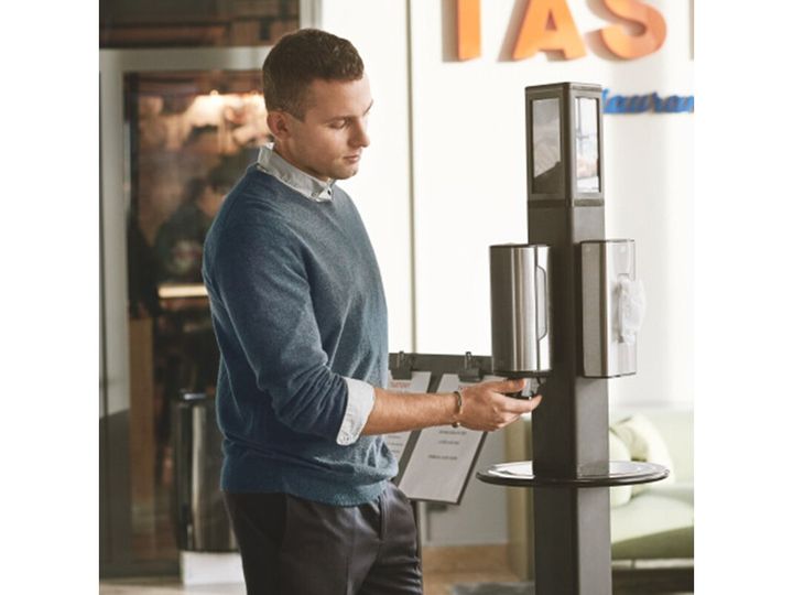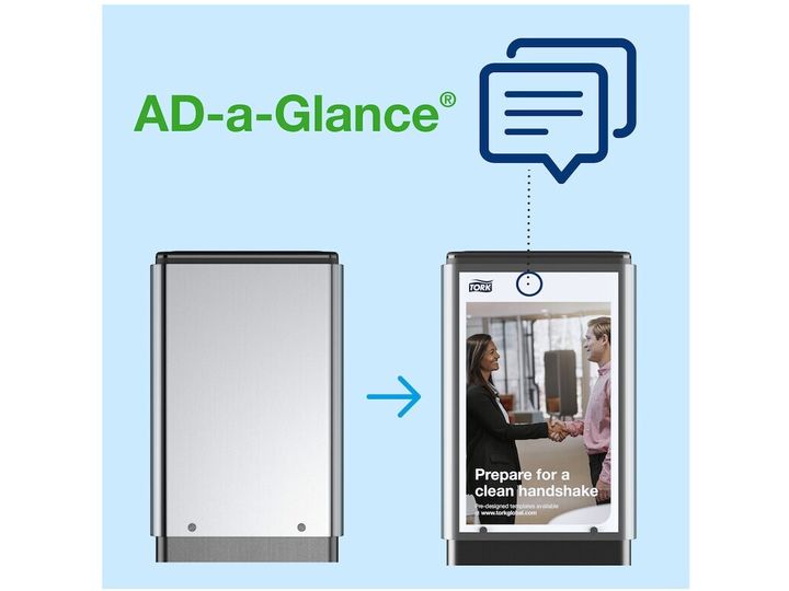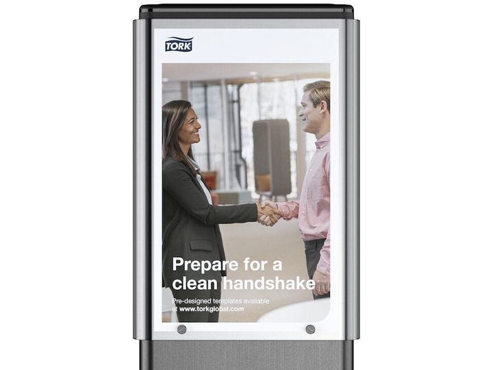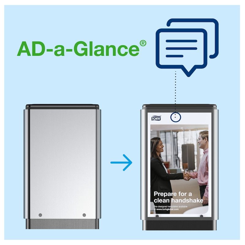 AD-a-Glance® til Tork Gulvstander er et kommunikationsredskab, der kan bruges til at opfordre til bedre håndhygiejne i kontormiljøer og andre offentlige steder.