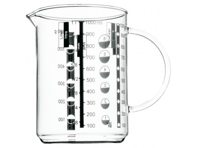 Read off small amounts with precision. Measurement scales in litres, millilitres, cups and grammes.