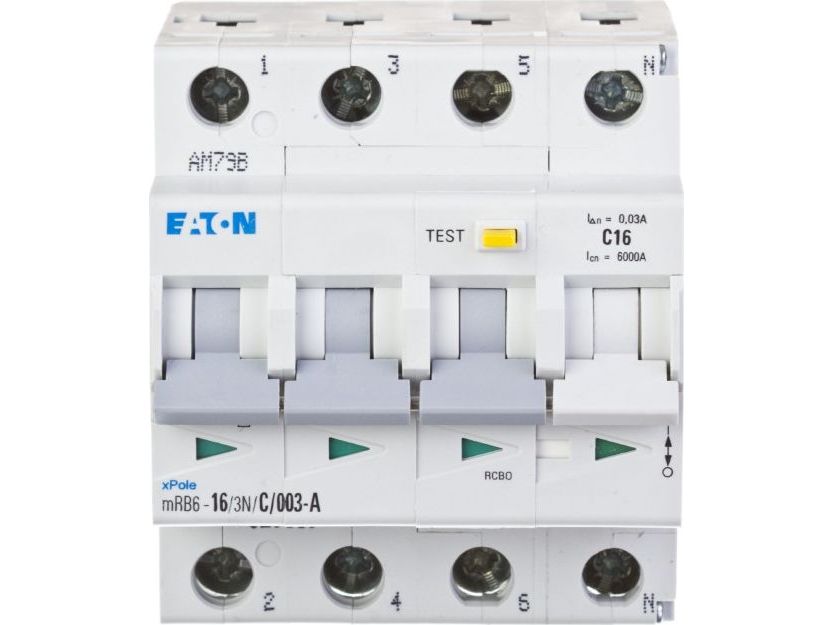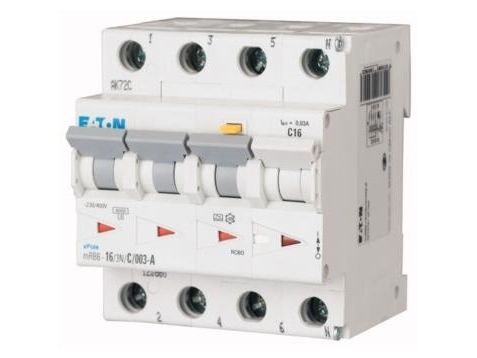 Eaton combination breaker 16A 3P+N C - 30mA 4M 6KA (HPFI type A) mRB6-16/3N/C/003-A