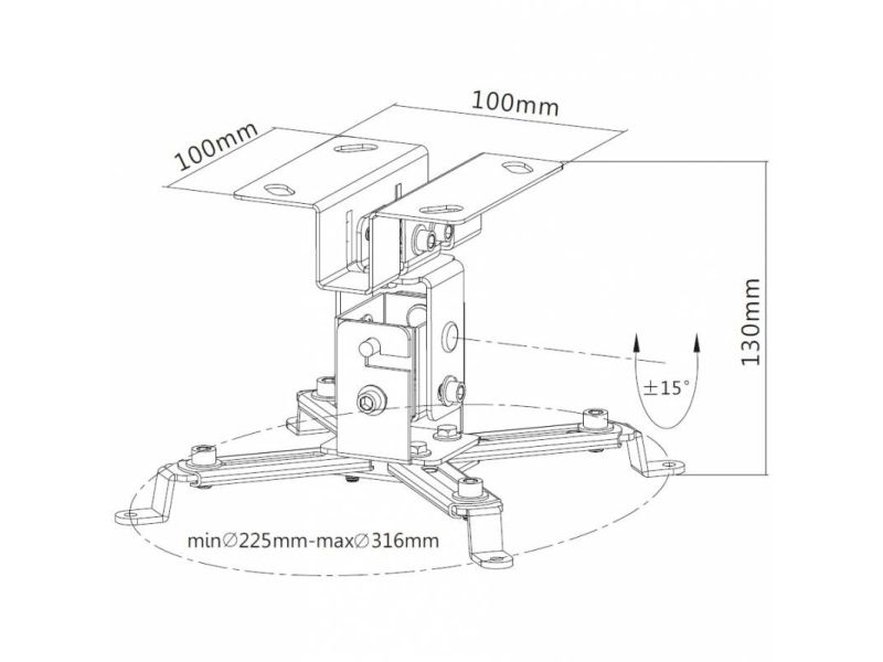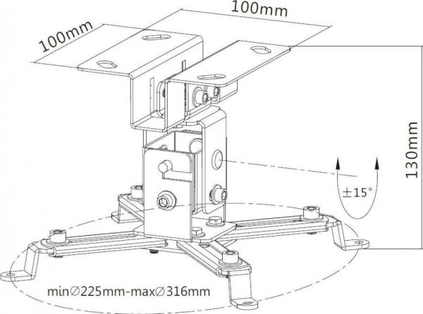 CA-PM 2S is a universal ceiling support for projectors up to 20kg. Offers a flexible positioning of the projector, with four adjustable support arms that can adapt to a wide range of mounting holes. The QD allows you to install the projector quickly and it may be released easily for maintenance.