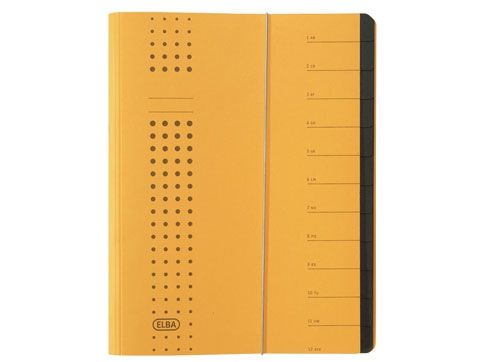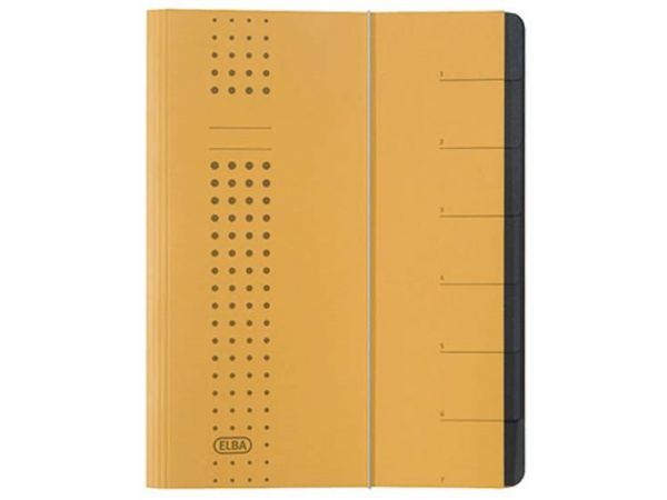 - Fächer mit Blankotaben - Vorderdeckel mit Tabaufdruck und Feineinteilungen zum Beschriften - Sicherung durch Spanngummi - Mit Verschluss - Einband aus Karton (RC), 450 g/m - Für A4 - Größe: 250 x 315 mm (B x H) - 7 Fächer