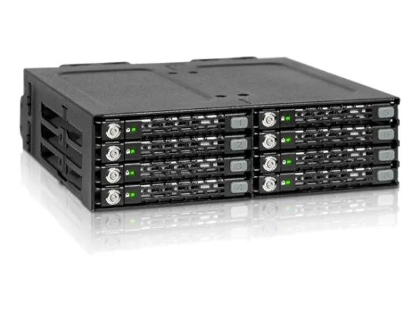 Not all devices are created equal, and this can be seen with the ToughArmor MB998SK-B which skews the realm of possibilities. It boasts the ability to house an unprecedented 8 x 2.5" SATA drives with 5mm to 7mm height into a single external 5.25" bay, making it the ultimate solution for storage dense applications. The unique hot-swappable 2.5" EZ Slide Nano trays let you painlessly and quickly swap out drives. Dual 40mm fans keep your drives nice and cool while ventilated openings located on the front and sides maximize airflow. The MB998SK-B features a rugged heavy duty full metal housing which is commercially designed for Medical & Military systems, IPC, enterprise, and industrial settings.