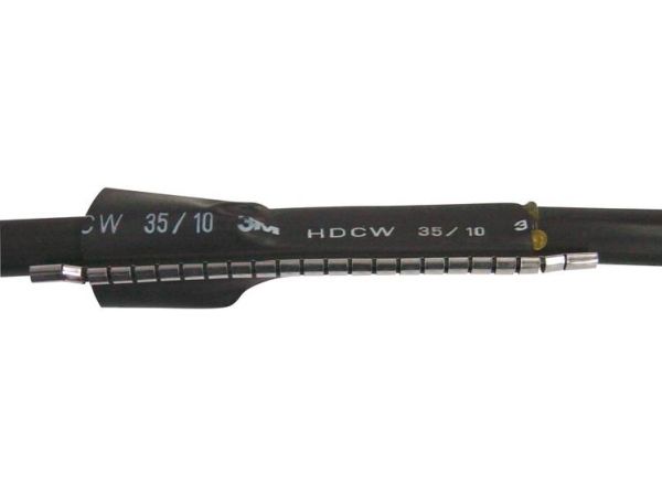 3M™ Wraparound Heat Shrink Cable Repair Sleeve HDCW is designed to repair damaged cable sheaths. It is also suitable for use with cable joints and as additional corrosion protection on undamaged cables. Quick and easy to apply, it provides maximum protection against mechanical stress, even in the most aggressive environments. The inner wall of the sleeve is coated with hot melt adhesive to achieve a safe and watertight bond with the cable and give a perfect seal when heat is applied, while a corrosion proof metal clip is used to fully close the sleeve.