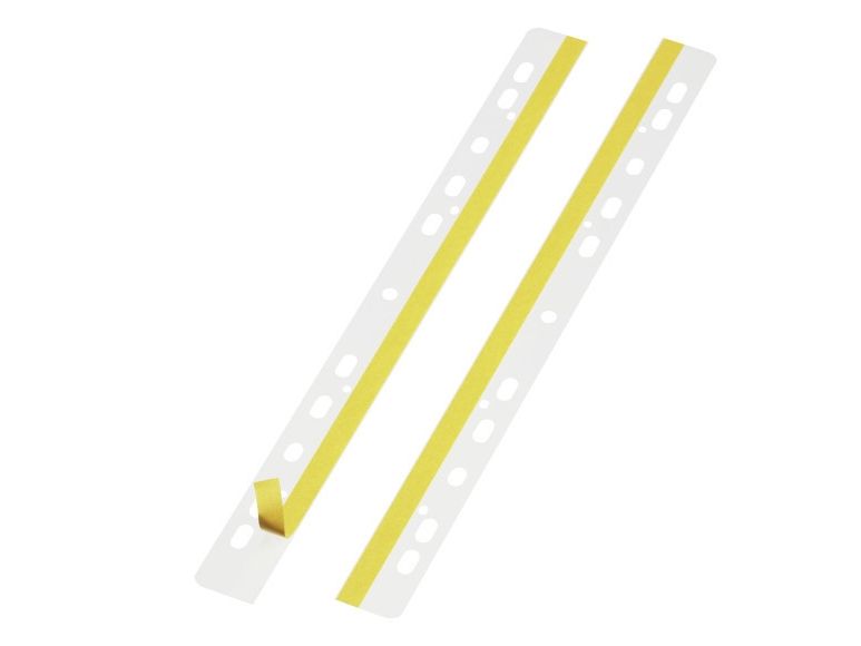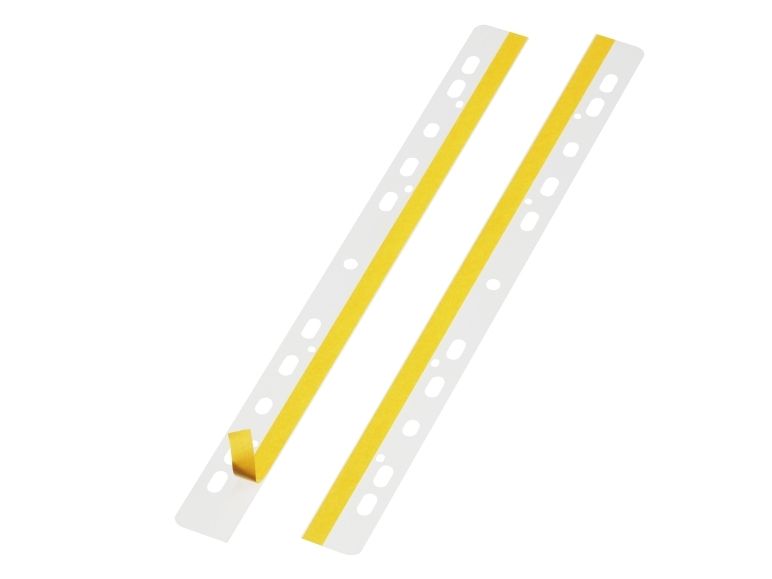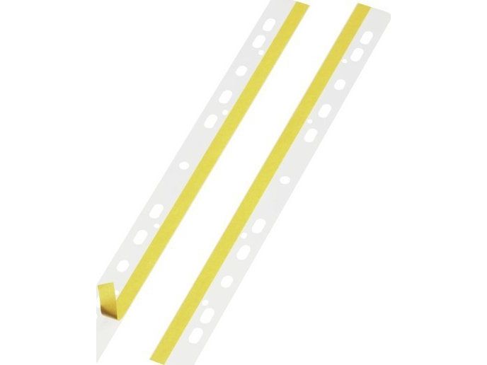 Self-adhesive filing strips with universal punching for filing unpunched documents in files and ring binders. Ideal for catalogues, brochures, photos and drawings. Stick the selfadhesive surface to the back of the document. Multi-punched to fit every type of folder and ring binder. For format: A4 Size mm: 295 x 25