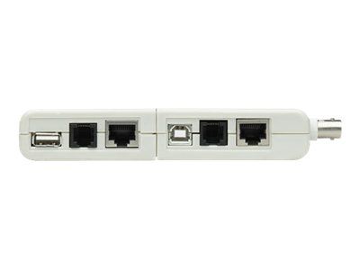 Features: - Tests 4 types of cables: RJ-11/-45/USB/BNC; - Simple one-button test; - Tests patch cables and installed wiring; - 600 ft. test distance; - LEDs indicate connections and faults; - Tests shielded and unshielded LAN cable.