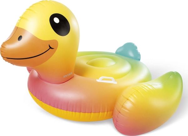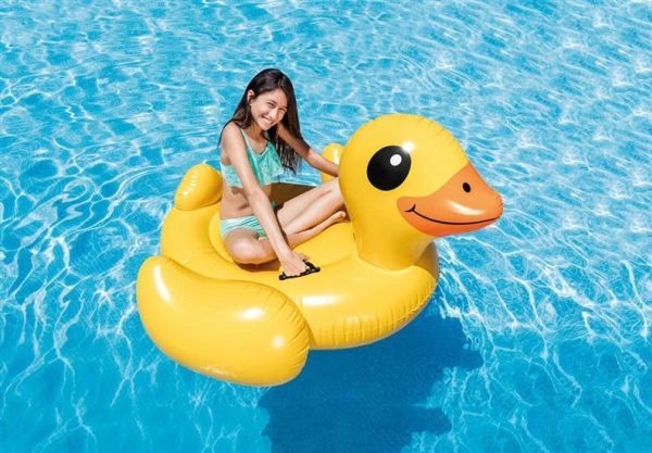 Hold on to the 2 heavy duty handles as you float in the pool. Turn your pool into a duck pond with this cute inflatable duck from Intex. The duck has 2 heavy duty handles and 2 air chambers. Dimensions 147 x 147 x 81 cm. Max 40 kg. Includes 1 repair patch. From 3 years - under adult supervision.