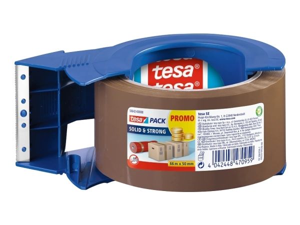Silent packaging tape TESA PACK Solid and Strong 50mm x 66m brown with dispenser