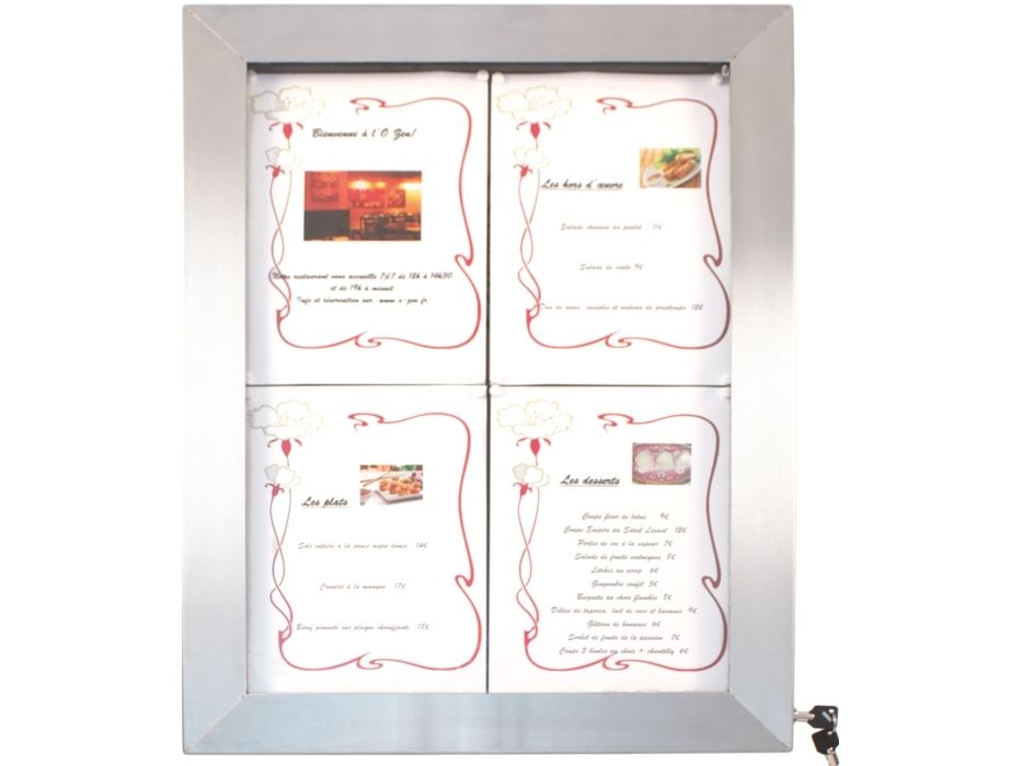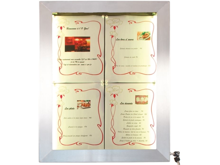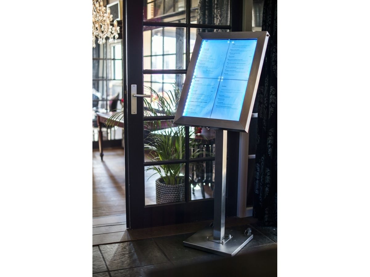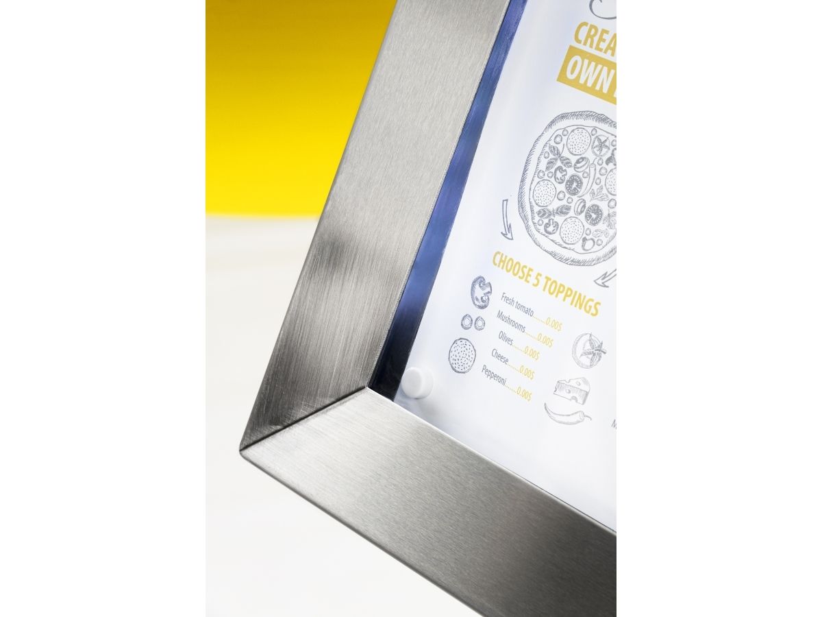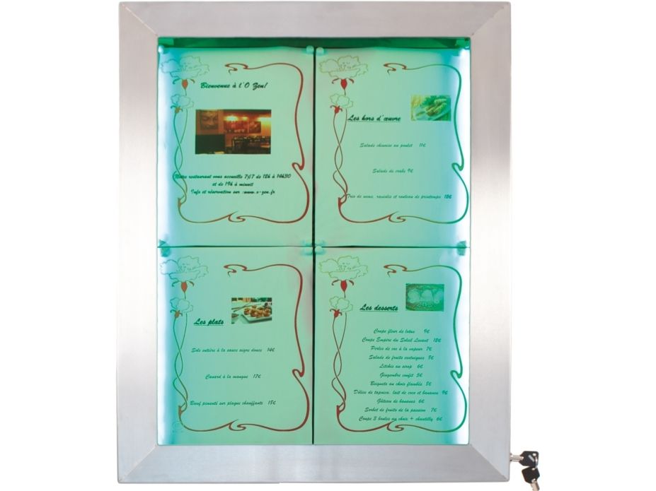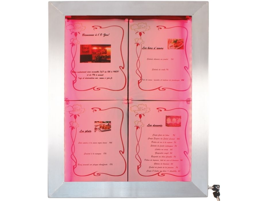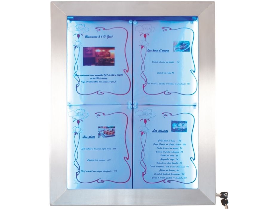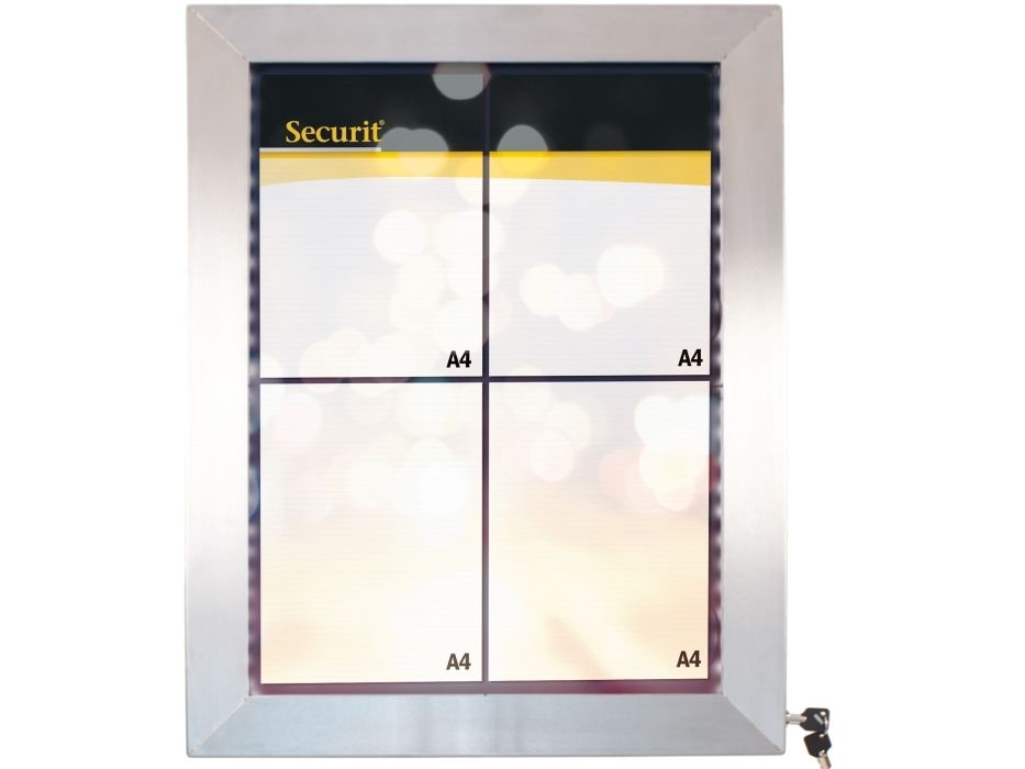 Securit® stainless steel LED information display panel for 4xA4, steel, 20 light colors MCS-4A4-LSS