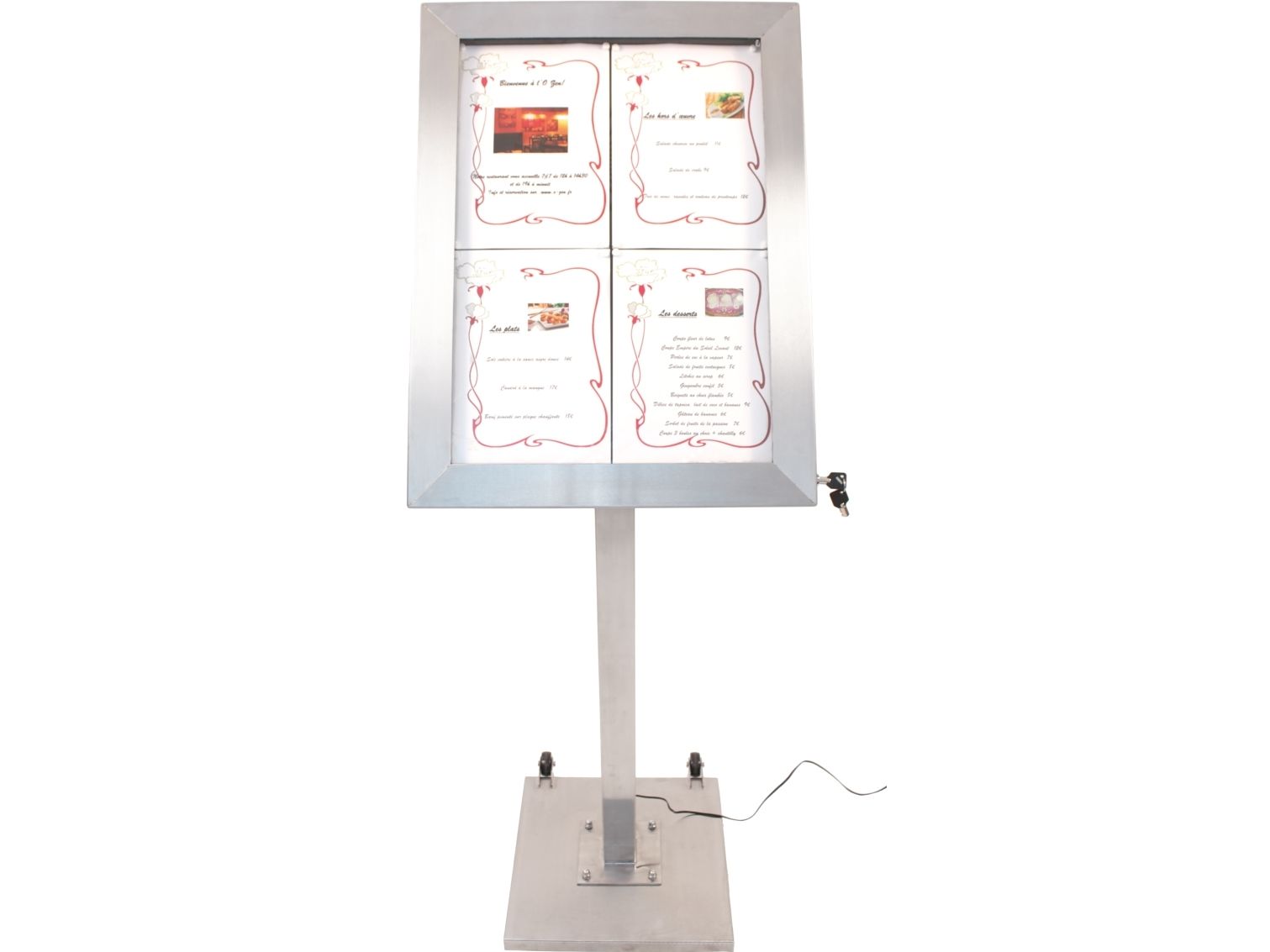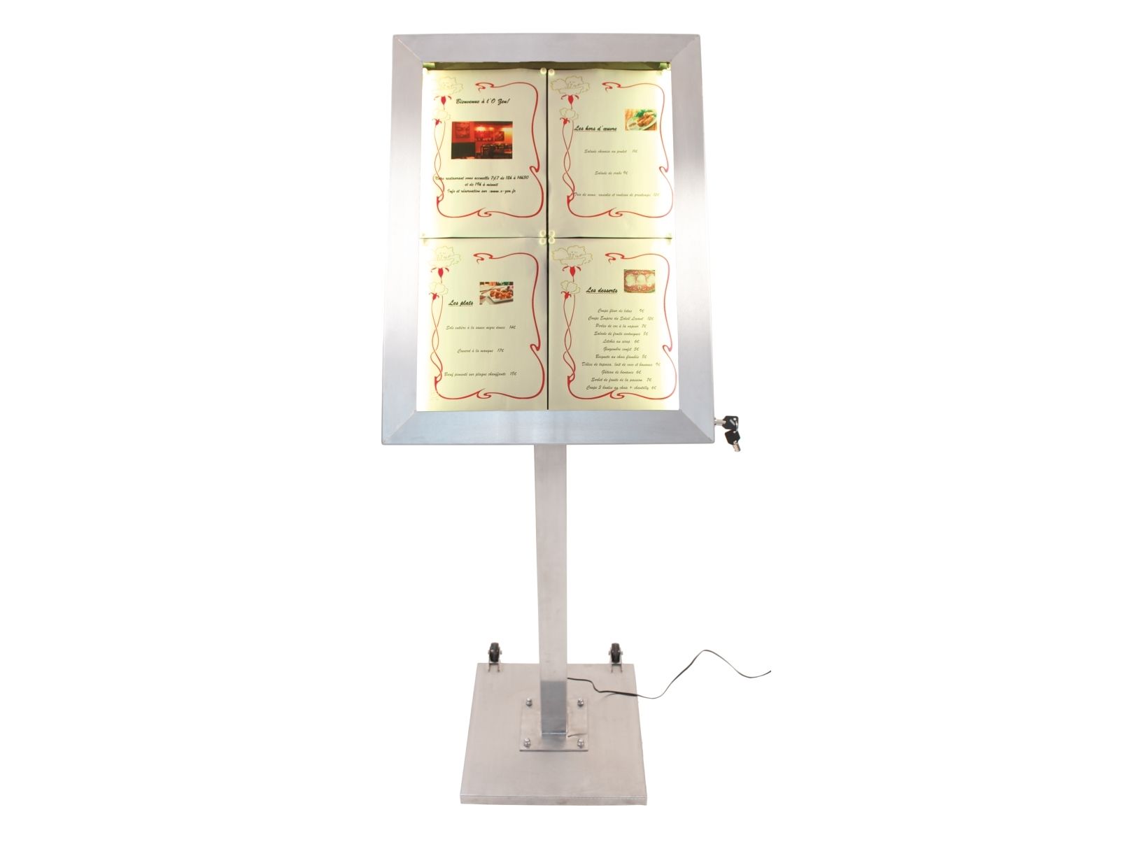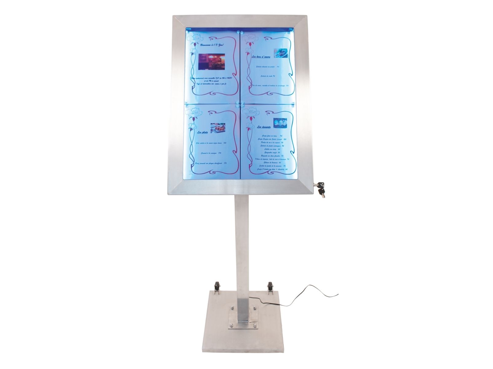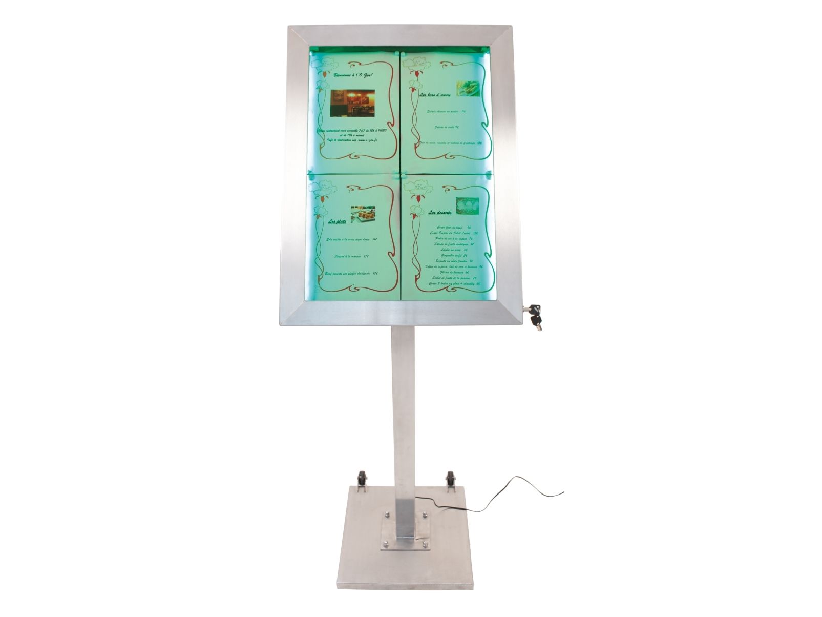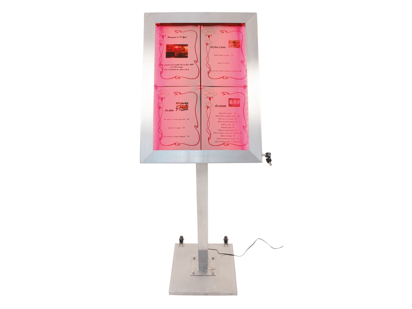 Securit® stainless steel LED information display panel for 4xA4, steel, 20 light colors MCS-4A4-LSS