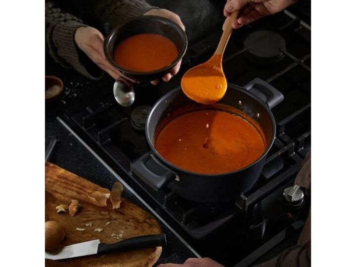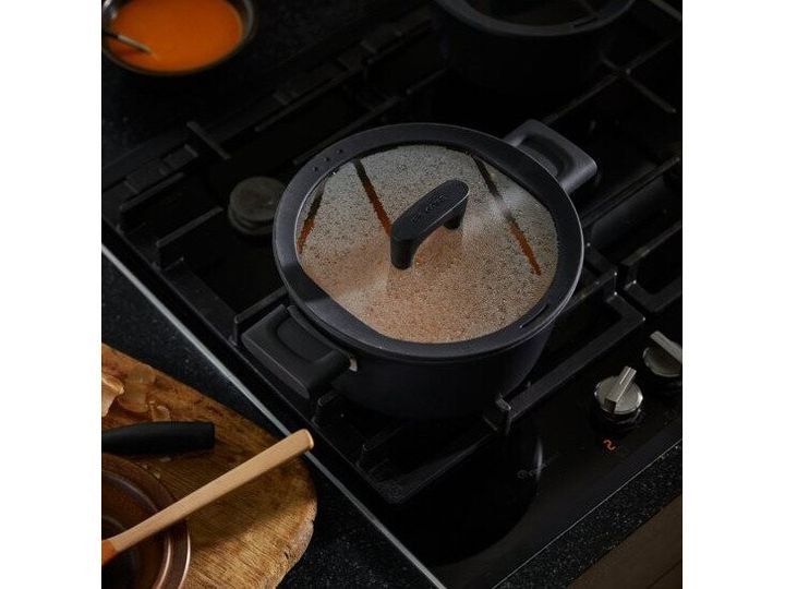 The pan has an ergonomic handle that stays cold during use, ensuring a secure and comfortable grip. The thick base ensures even and efficient heat distribution for the best results every time. With Energy Base technology in the base, you get faster heating - as much as 50% faster - and a 30% energy saving on glass ceramic hobs, while being compatible with all types of cooking zones, including induction.