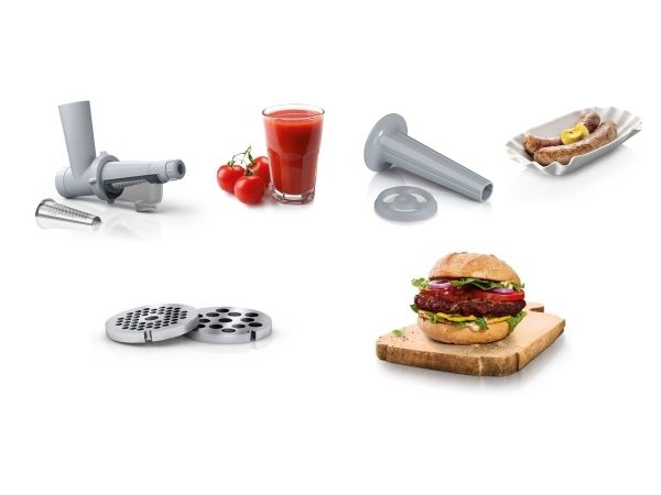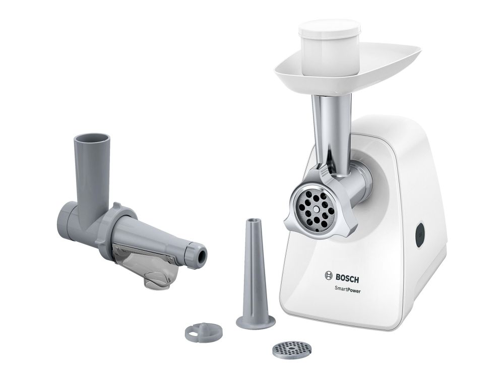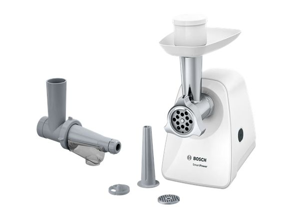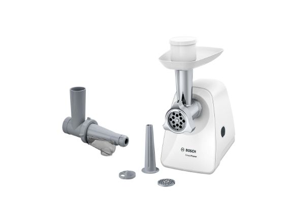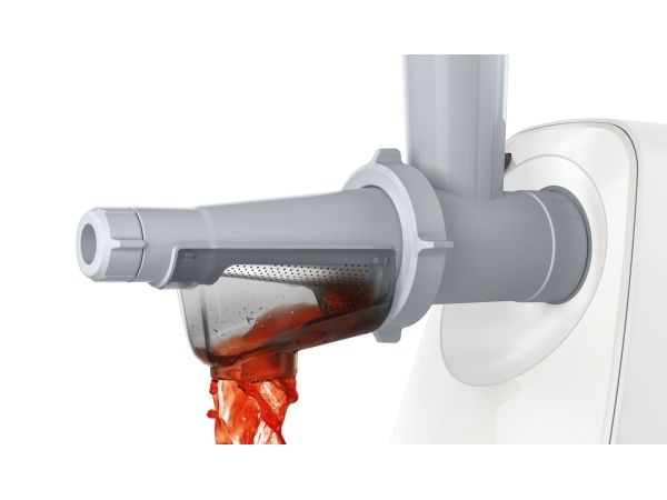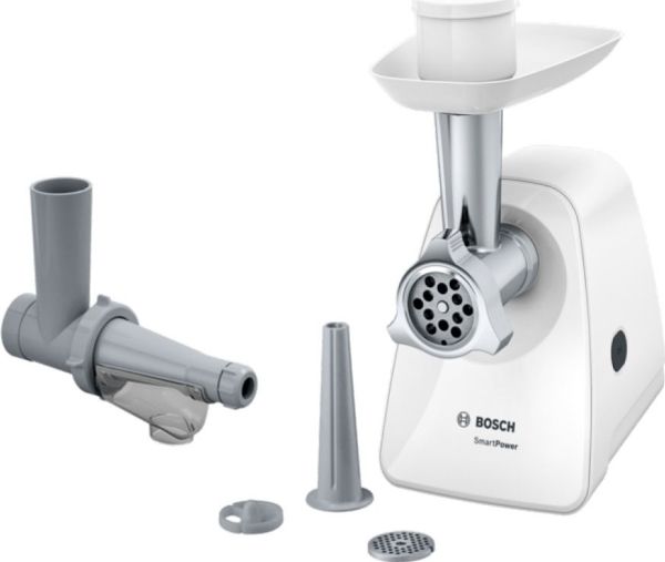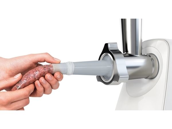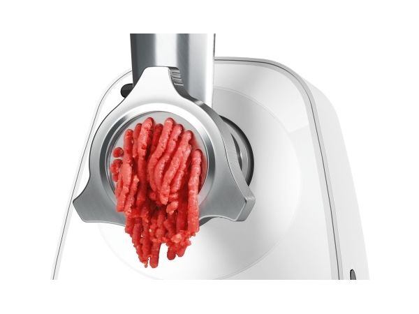 The Bosch SmartPower MFW2515W meat grinder is designed for home chefs who demand efficiency and versatility in the kitchen. With a body made of durable plastic, this grinder combines functionality with ease of use. It features a productivity of 1.7 kg/min, making it ideal for processing meat swiftly. The included food tray ensures convenient handling of ingredients, while various attachments, including a citrus press and sausage stuffer, expand its capabilities beyond traditional grinding tasks. The device is equipped with a push-button control for simplified operation and non-slip feet for secure placement during use. Safety is also a priority with the Bosch SmartPower MFW2515W, which includes overload protection to safeguard against potential damage. The grinder operates at a power consumption of 1.5 kW and can handle a voltage range of 220 - 240 V comfortably. With a cord length of 1 m, it provides flexibility in placement while maintaining a clean workspace. The preset speed settings ensure optimal performance tailored to various food types, bringing convenience to every grinding task.