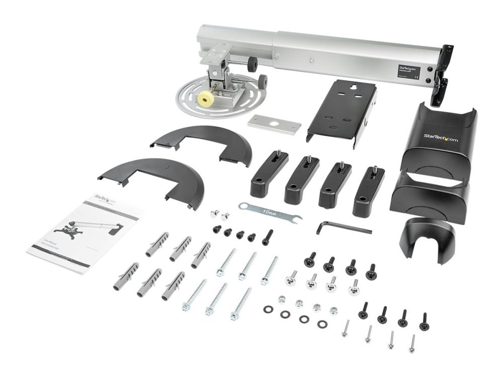 Startech Universal Projector Wall Mount, Projector Mount supports Short & Ultra Short Throw Projectors up to 33lb (15kg), Tilt/Swivel/Rotate, Adjustable height 16.5" to 27.7" from Wall - In-wall Cable Routing (PROJWALLMNT) bøjle - justerbar arm - for projektor - sølv