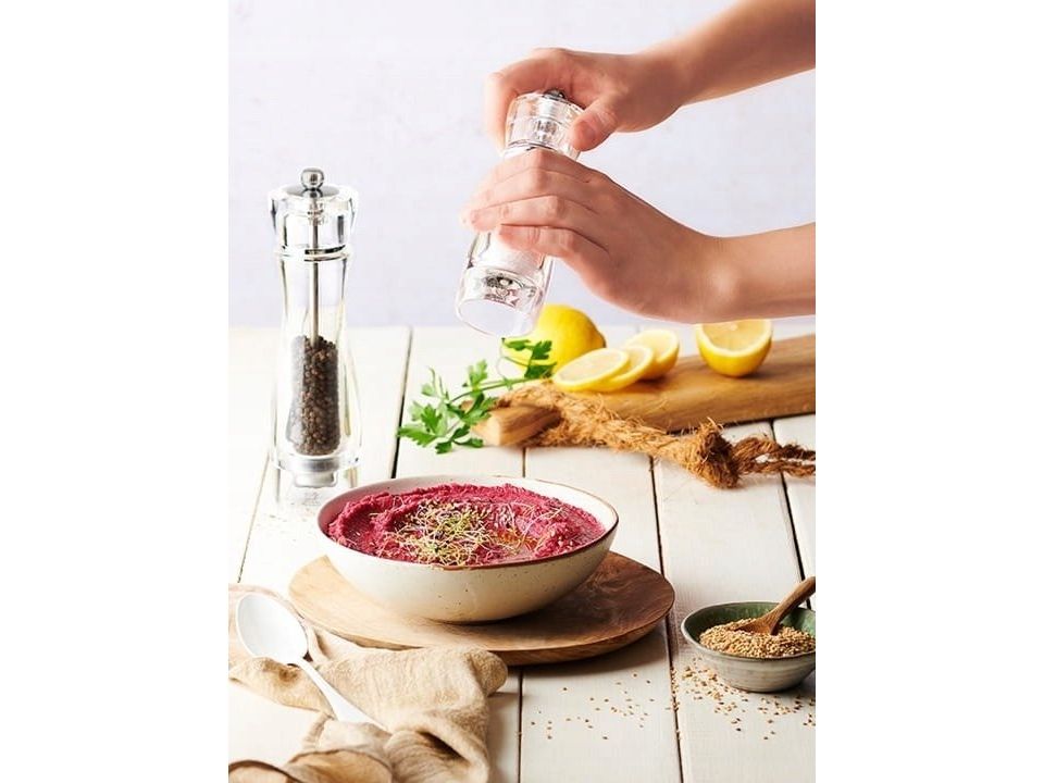 Transparent manual salt mill, 23 cm With its modern lines combined with generous curves, clearly showing its contents, the Vittel salt mill has nothing to hide.