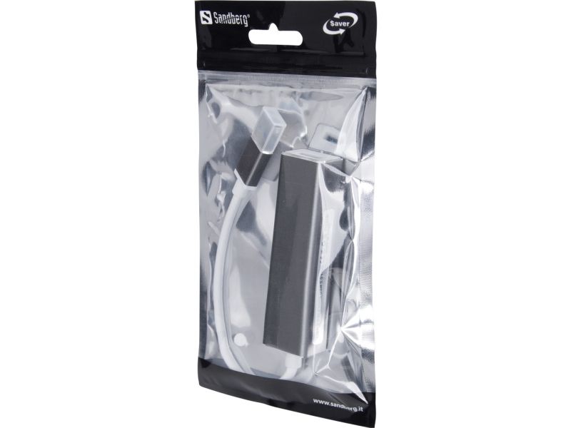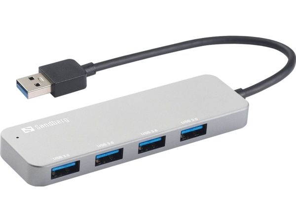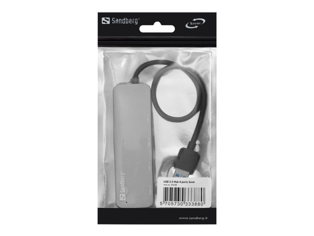 The Sandberg USB 3.0 Hub 4 ports Saver allows connection of up to 4 USB devices to your computer. Thus you can for example connect an external hard disk, a printer and a mouse simultaneously. Connect it to a USB port and it will work immediately, without the need to install drivers.