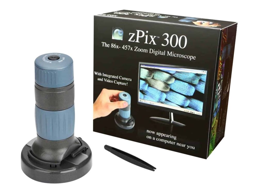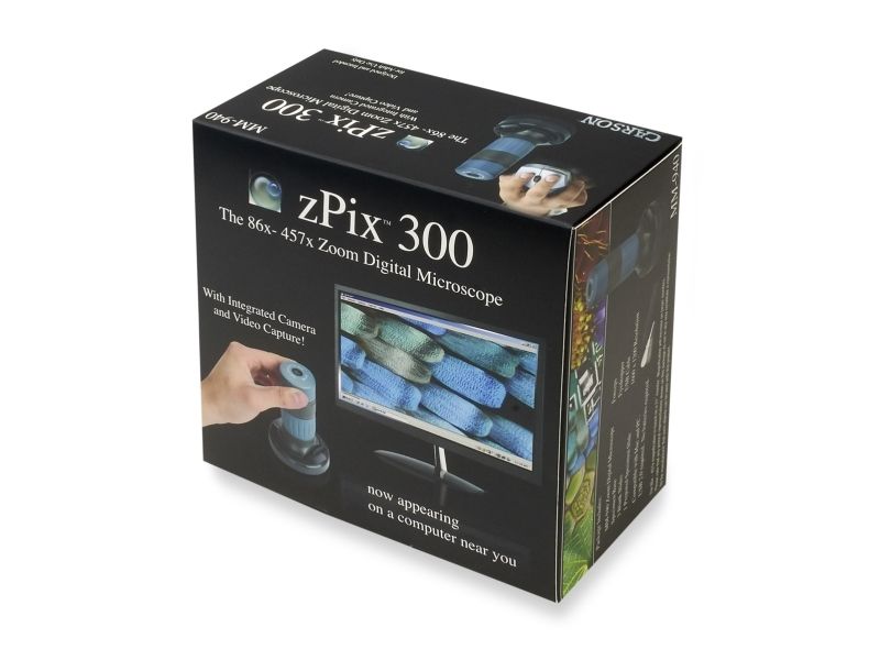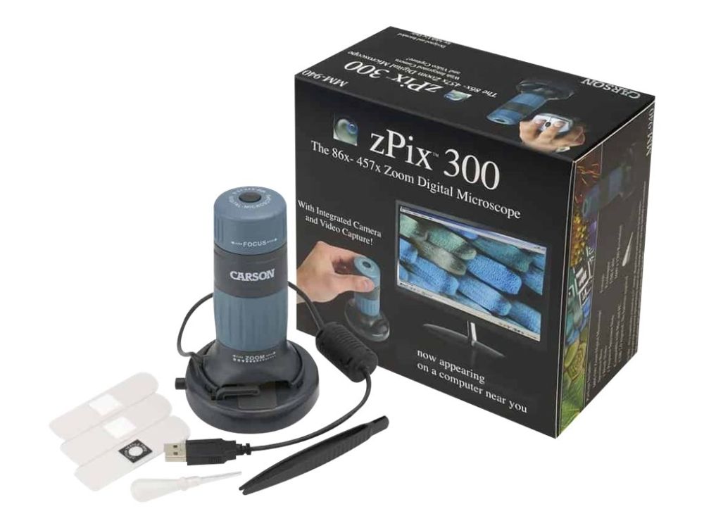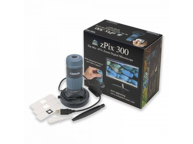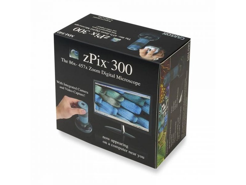 The zPix 300 86x-457x USB Digital Microscope with Intregrated Camera and Video Capture, MM-940 is a powerful 2 megapixel zoom USB digital microscope that displays a magnified image right on your computer screen. The impressive 86x-457x effective magnification allows you to see details of ordinary objects that you never knew existed! Capture an image to keep with the click of a button. You can even capture close focus video and send it to your friends and family. Use the base attachment to view prepared slides or remove the base and place the microscope on any surface to reveal extremely fine details. The zPix 300 USB digital microscope will provide hours of fascinating and educational entertainment for adults and children alike.