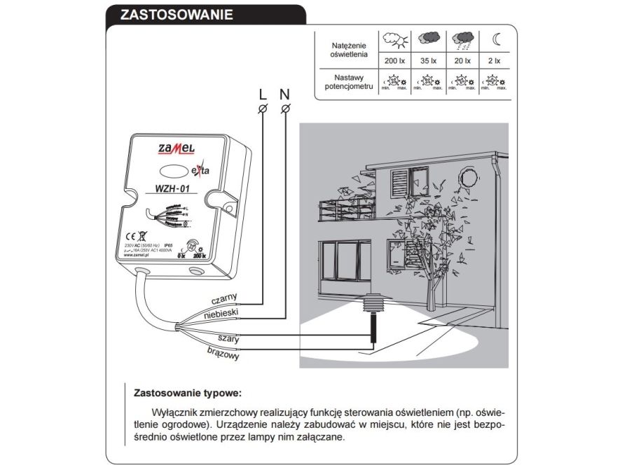 Zamel dusk switch flush-mounted with probe 230V AC IP65 WZH-01
