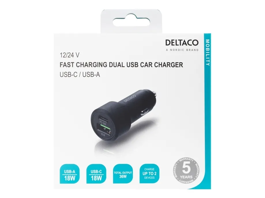 Bilstrømsadapter: 24 pin USB-C - 5 V - 3 A Bilstrømsadapter: 24 pin USB-C - 9 V - 2 A Bilstrømsadapter: 24 pin USB-C - 12 V - 18 W - 1.5 A Bilstrømsadapter: 4-pins USB Type A - 6.5 V - 2.4 A Bilstrømsadapter: 4-pins USB Type A - 9 V - 2 A Bilstrømsadapter: 4-pins USB Type A - 12 V - 18 W - 1.5 A