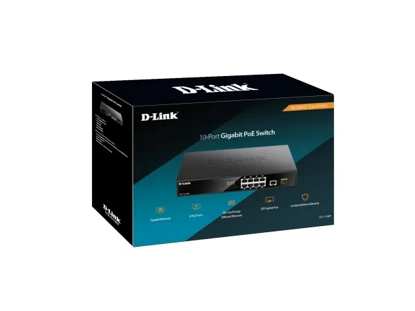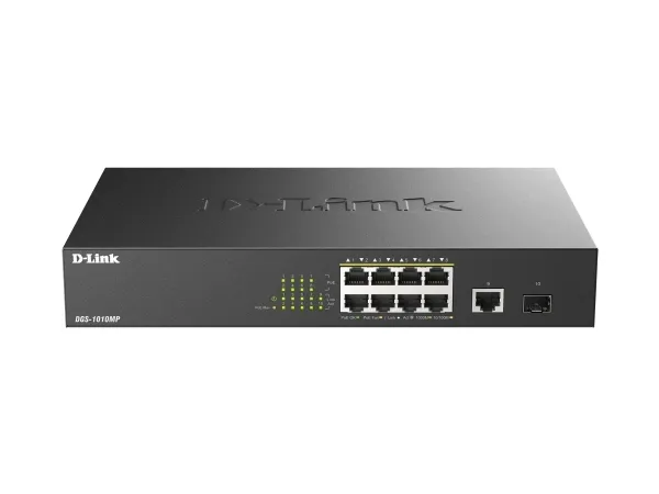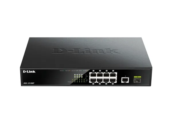 The D-Link DGS-1010MP 10-Port Gigabit PoE Switch is an ideal solution for small offices and enterprise environments looking to expand the network with a set of Power over Ethernet devices such as wireless access points, IP cameras, and IP phones. Built with small business and enterprise users in mind, the DGS-1010MP is a high-speed, flexible switch that features a fanless, quiet design so it can be conveniently placed anywhere in a working environment.\n\nPower over Ethernet\nThe DGS-1010MP features eight 10/100/1000BASE-T ports that support the IEEE 802.3at Power over Ethernet (PoE) standard. Each of the eight PoE ports can supply up to 30 W, with a total combined PoE budget of 125 W, allowing users to power up to four IEEE 802.3at-compliant devices without requiring an additional power supply. This allows devices to be installed in locations without any power outlets, saving on installation costs and reducing the time it takes to install new devices.\n\nSuperior Performance\nThe DGS-1010MP is fully plug and play, meaning installation is quick and easy and requires no additional configuration. Support for Auto MDI/MDI-X on all ports eliminates the need for crossover cables when connecting to another switch or hub. Auto-Negotiation on each port senses the link speed of a network device (either 10, 100, or 1000 Mbps) and intelligently adjusts for optimal compatibility and performance. With store-and-forward switching, the DGS-1010MP also maximizes network performance while minimizing packet loss during data transmission. In addition, the DGS-1010MP features one Gigabit Ethernet and one SFP uplink port for high-speed connections to remote storage or for long distance fiber connections to\nan uplink network. Combining the convenience of PoE, superior performance, and ease of use, the DGS-1010MP is the ideal choice for flexibly expanding your network while remaining cost efficient.\n\nCompact and Silent Design\nThe DGS-1010MP has a compact 11” design, so that it can be deployed in any easily accessible location on the work floor, allowing you to power a set of PoE-powered devices while avoiding additional cable clutter. Alternatively, the standardized 1U-sized housing means the switch can also be mounted in a standard 19” rack and be integrated in a server infrastructure. The DGS-1010MP is furthermore built around a fanless design. This makes the switch suitable to be used closer to, or in populated areas where it works efficiently while guaranteeing a quiet working environment.\n\nGreen Technology\nThe DGS-1010MP supports IEEE 802.3az Energy-Efficient Ethernet (EEE), reducing power consumption of the switch when network utilization is low and minimizing operating costs during periods of inactivity. By using EEE-compliant devices with the DGS-1010MP, organizations can noticeably reduce power consumption by having the switch automatically put ports into sleep mode when they are not being used.\n\nLimited Lifetime Warranty\nD-Link offers a Limited Lifetime Warranty on the DGS-1010MP to further its commitment to product quality and long-term customer confidence1.\n\n1 Limited Lifetime Warranty available in USA only. Warranty void when not purchased from Authorized US D-Link reseller. Please visit us.dlink.com for list of authorized US resellers.
