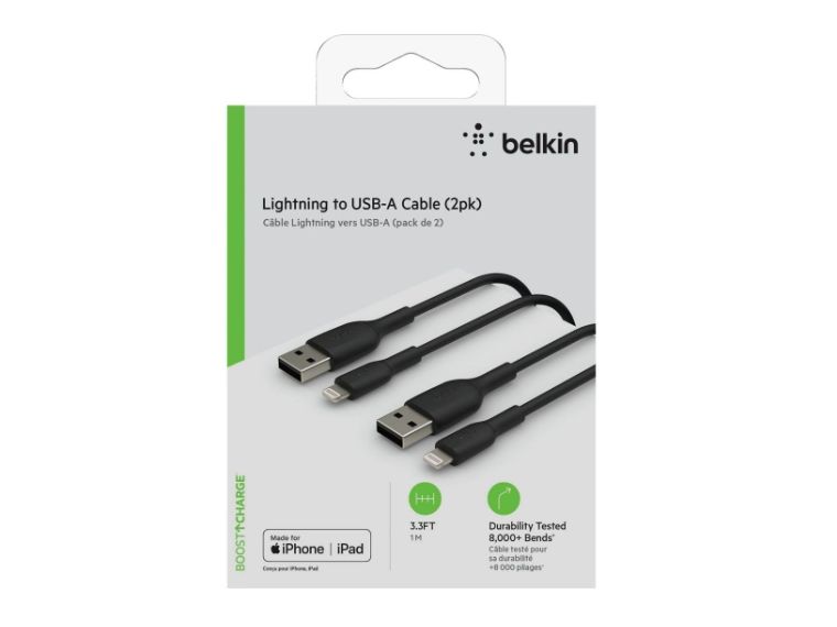 Charge your Apple devices, sync music or photos to a laptop, and transfer data from any USB-A port with the reliable charging cable that you can use at home, work, or on the go. You'll connect with confidence without having to worry about breakage. This Lightning to USB-A cable is great when you need a charge from an outlet all the way across the room, or just want to connect your device to the power bank in your bag or pocket.