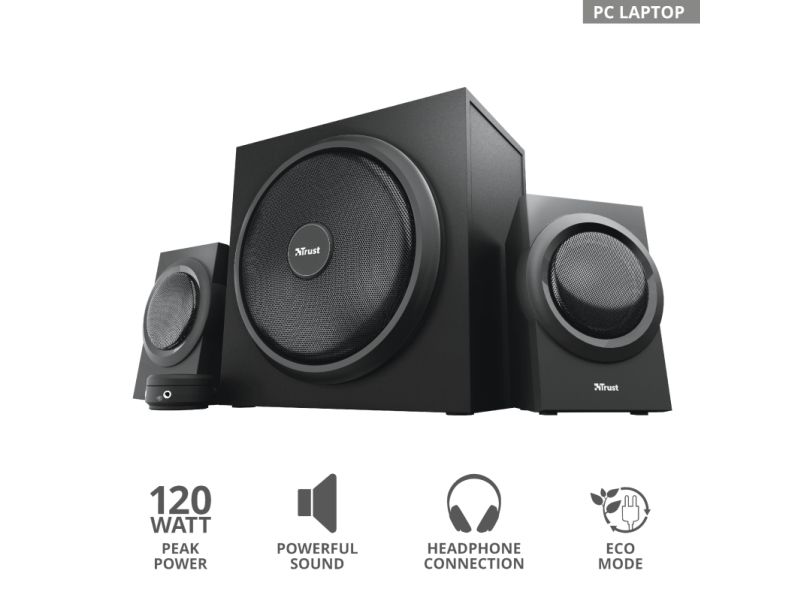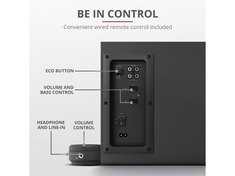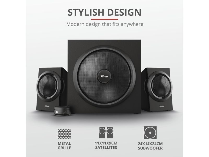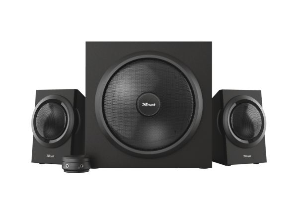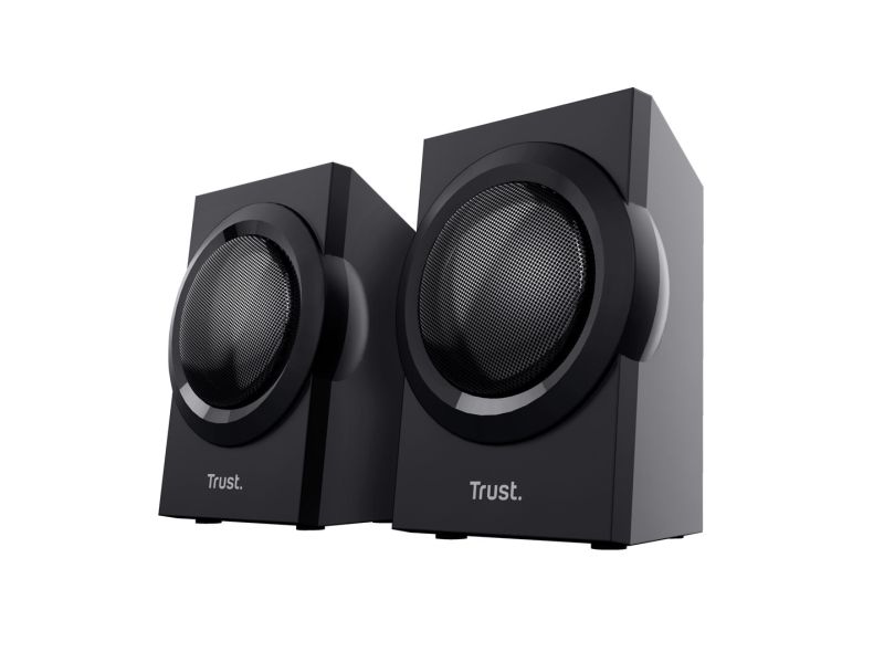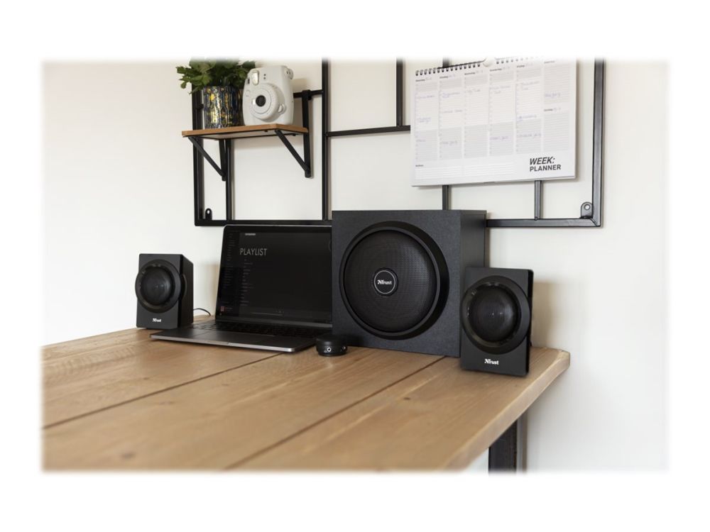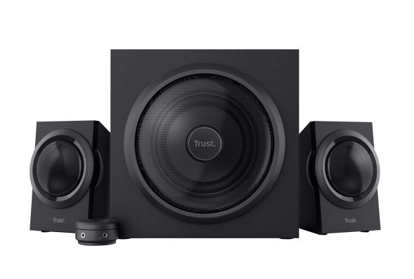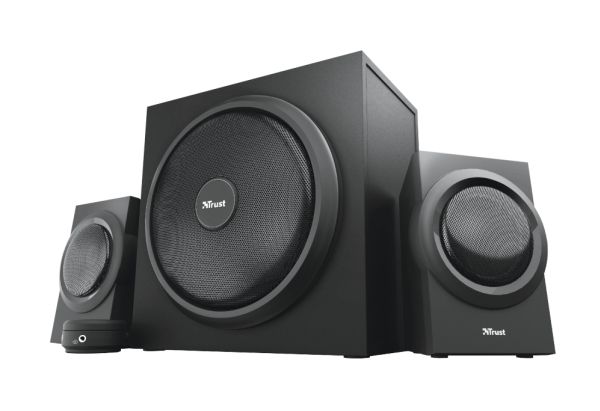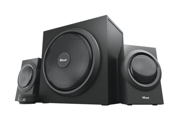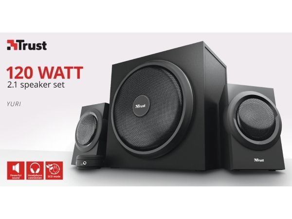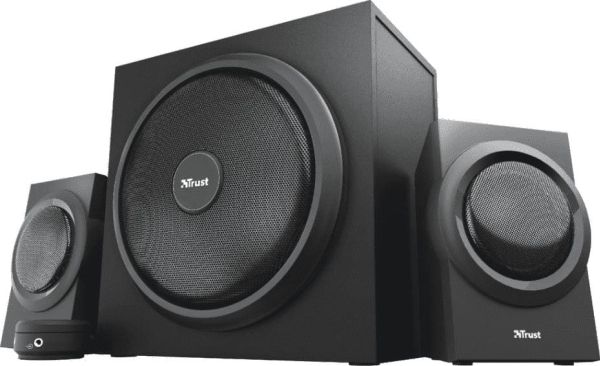 The Trust Yuri 2.1 Speaker Set with Subwoofer is sure to turn heads. The sleek and compact design comes in stylish black, with a wooden subwoofer. Its compact size means it fits with any setup, whether that’s your living room or home studio.