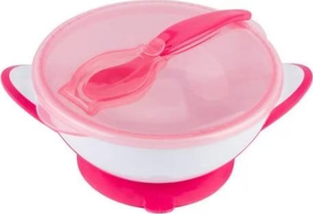 BabyOno Miseczka dla dzieci z przyssawką i łyżeczką różowy Baby Ono
