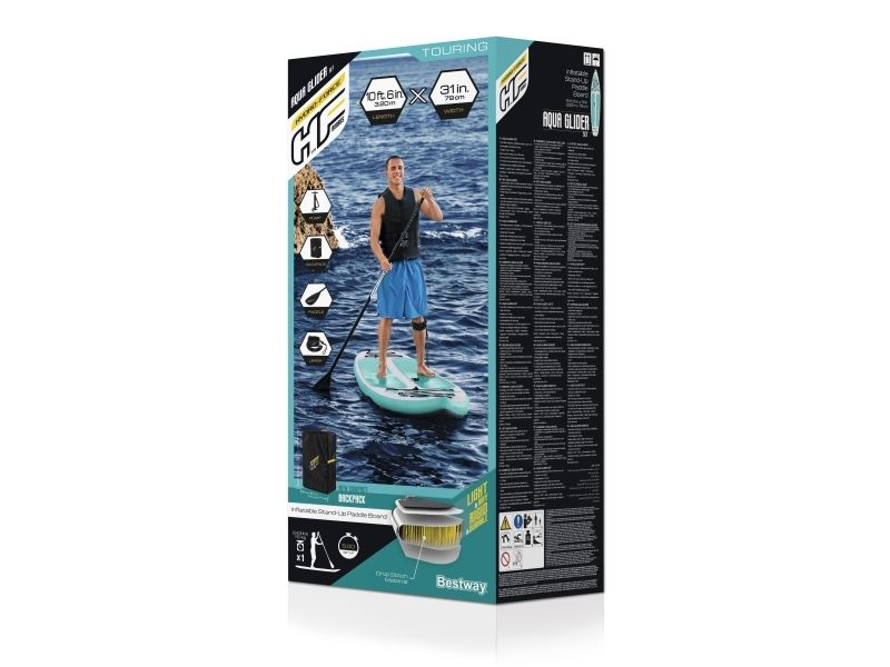 Bestway Hydro-Force 10''6" x 31" x 4.75"/3.20m x 79cm x 12cm Aqua Glider Set, Stand Up Paddle board (SUP), Multicolour, 110 kg, Full color box, ATTENTION!NO PROTECTION AGAINST DROWNING! SWIMMERS ONLY!, 3200 mm